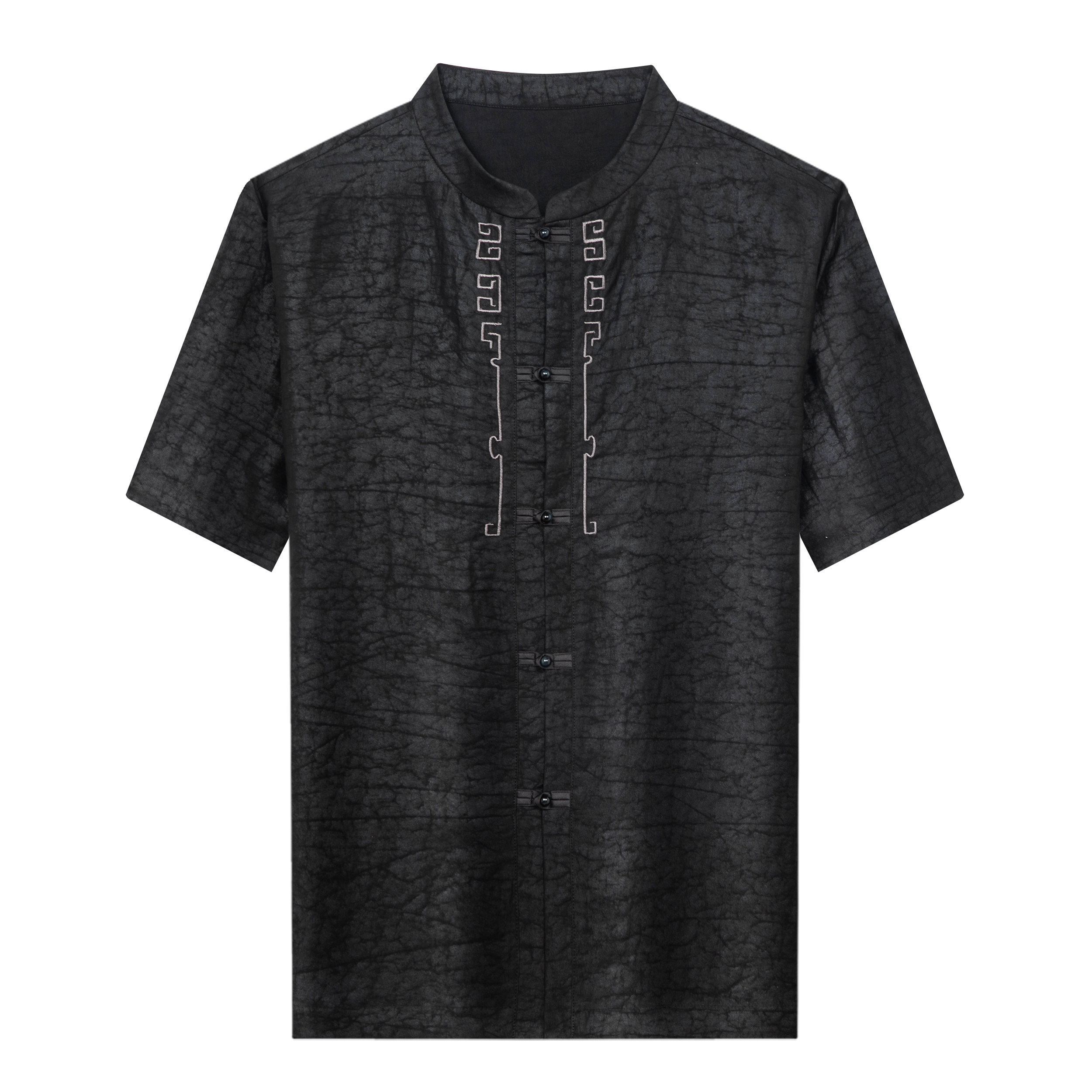 狄斯仑龟裂纹香云纱短袖衬衫男2026夏新款中式中年盘扣桑蚕丝唐装