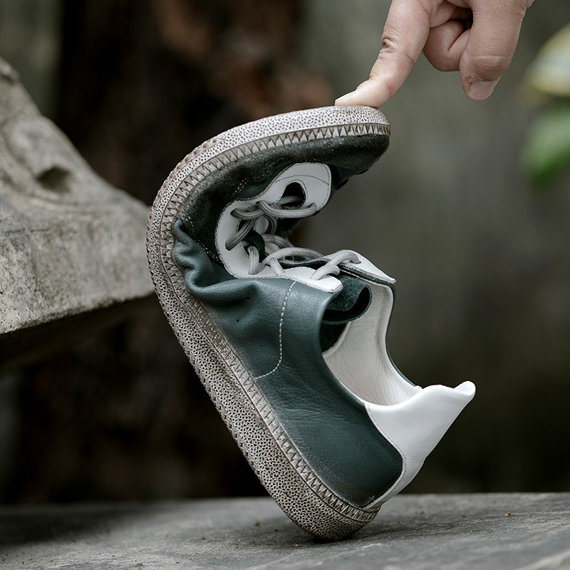 周莹牛皮复古做旧阿甘鞋脏脏鞋泥染做旧手工德训鞋解构鞋休闲鞋