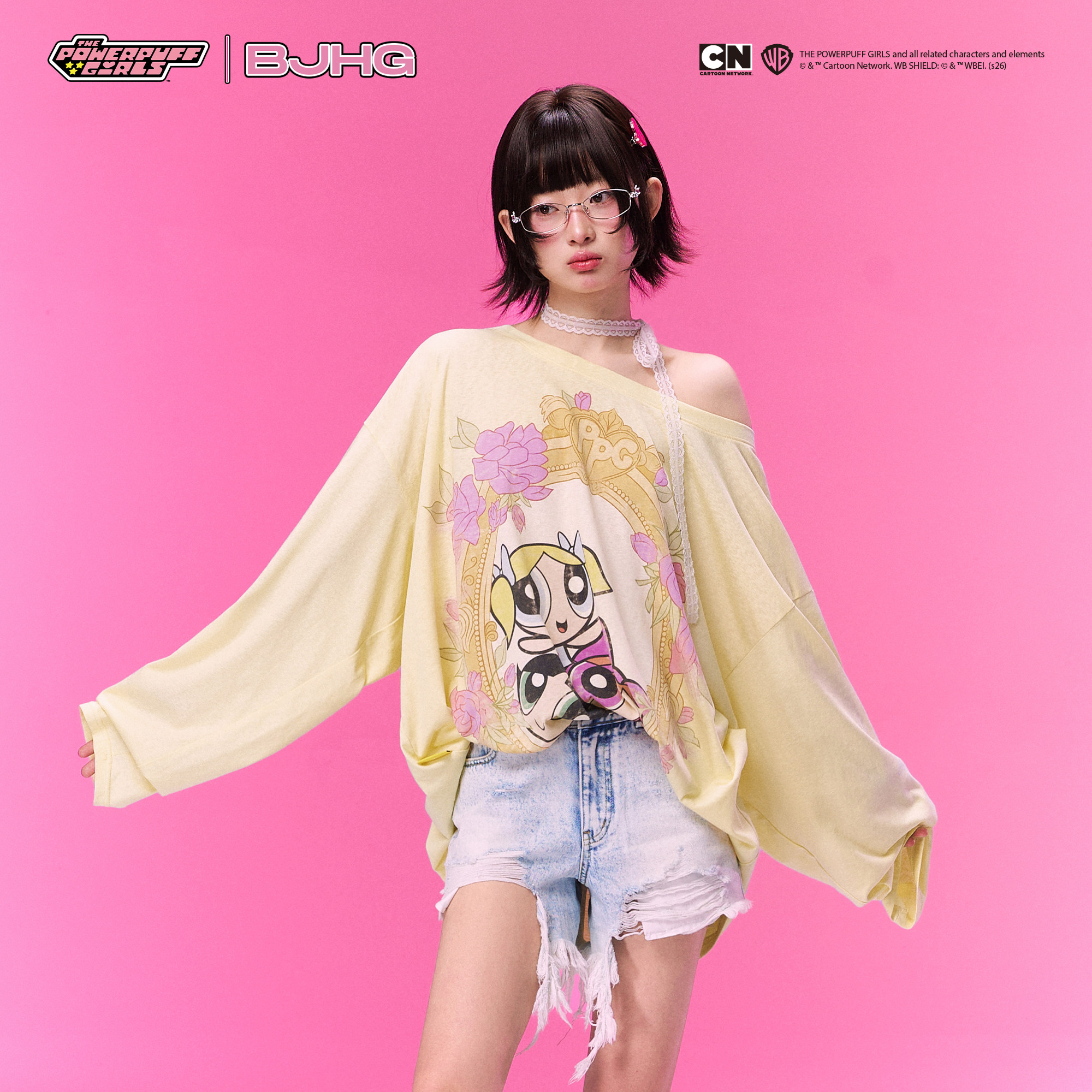 【飞天小女警联名】 BJHG不计后果罩衫长袖T恤女夏季斜肩打底上衣