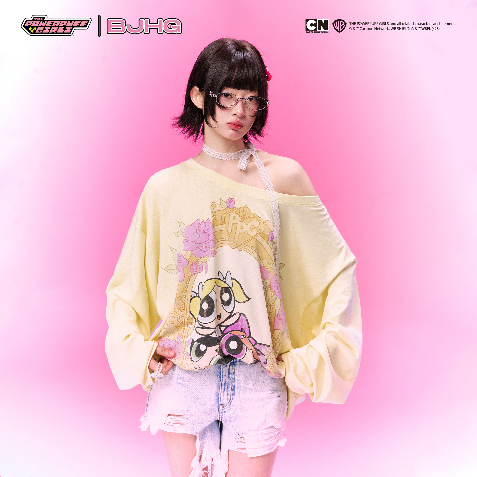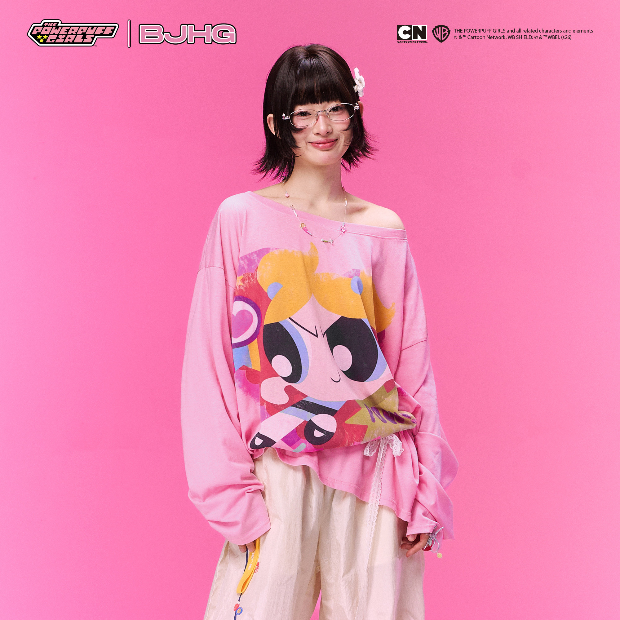 --------------------- 【飞天小女警联名】 BJHG不计后果罩衫长袖T恤女夏季斜肩打底上衣 【原售价】179元 【现售价】157元 【推荐理由】
