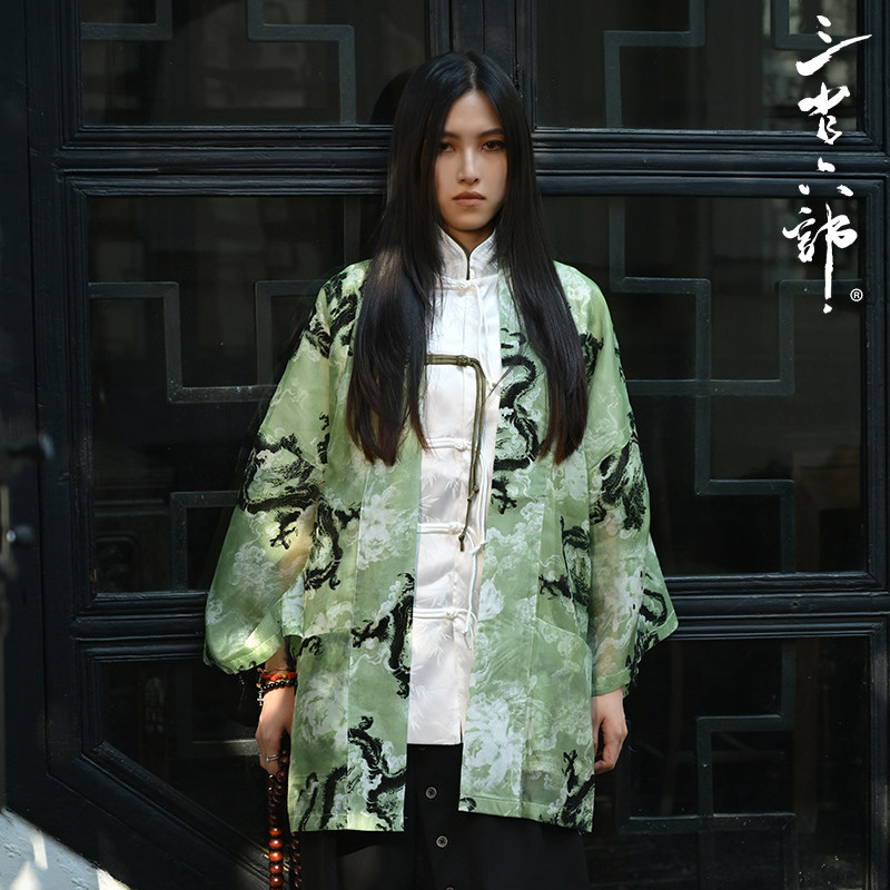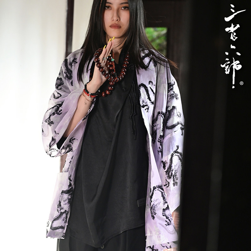 淘宝三省六部·礼部【御龙天纱】夏季中国风轻薄水墨植绒男士防晒道袍