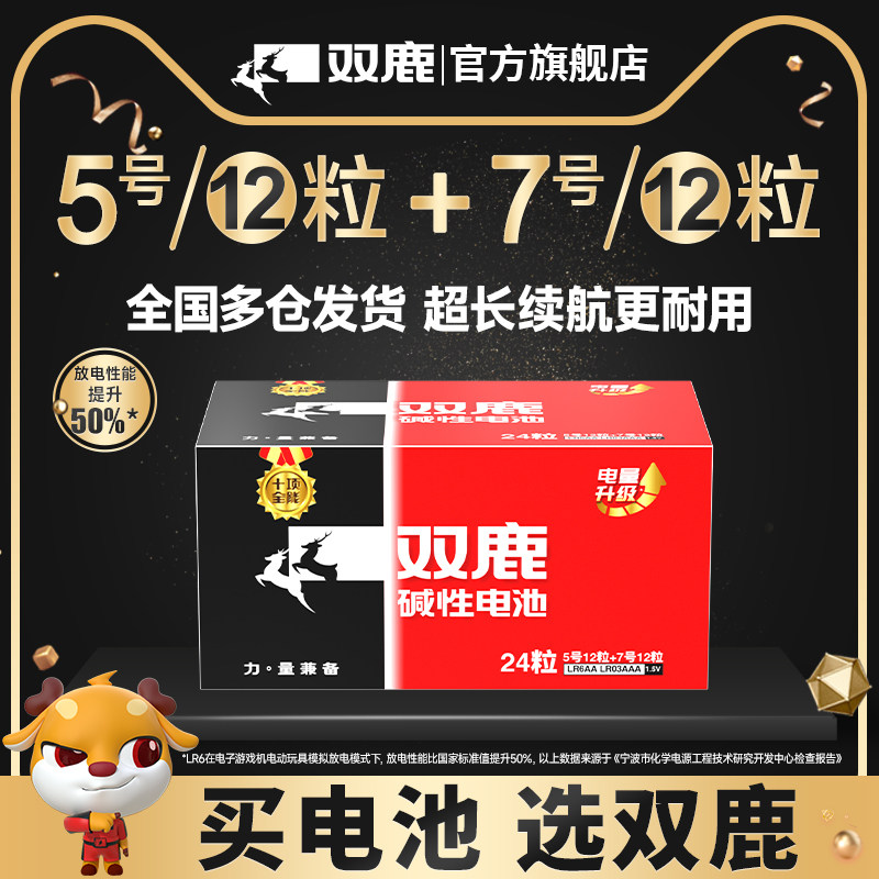 双鹿新精品碱性电池5号12粒+7号12节儿童玩具干电池批发遥控器五号七号1.5V正品鼠标遥控汽车挂闹钟小电池