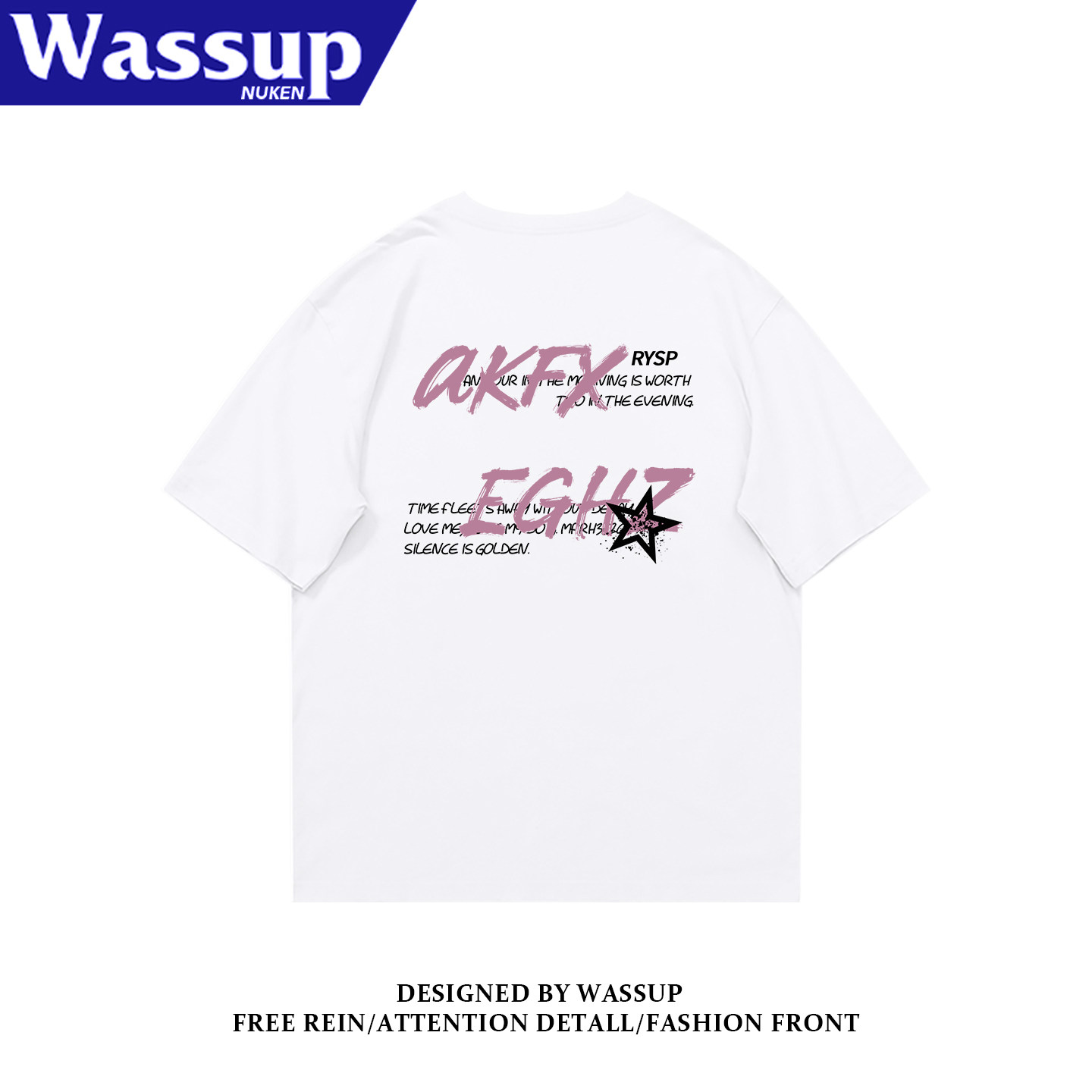 --------------------- WASSUP国潮原创重磅短袖男美式街头小众设计感潮酷纯棉半袖上衣潮 【原售价】79.8元 【现售价】43.8元 【推荐理由】