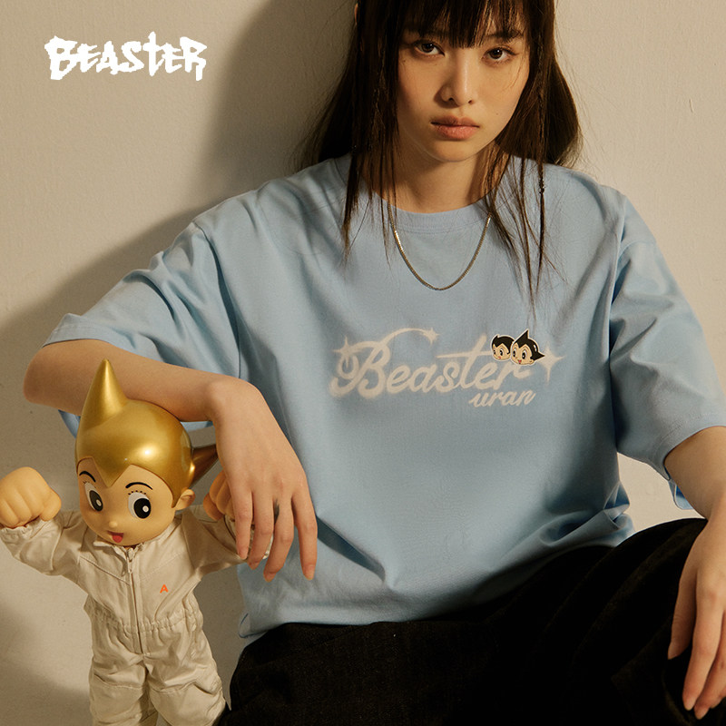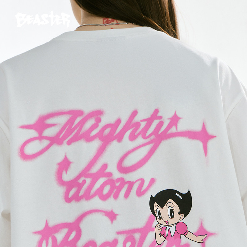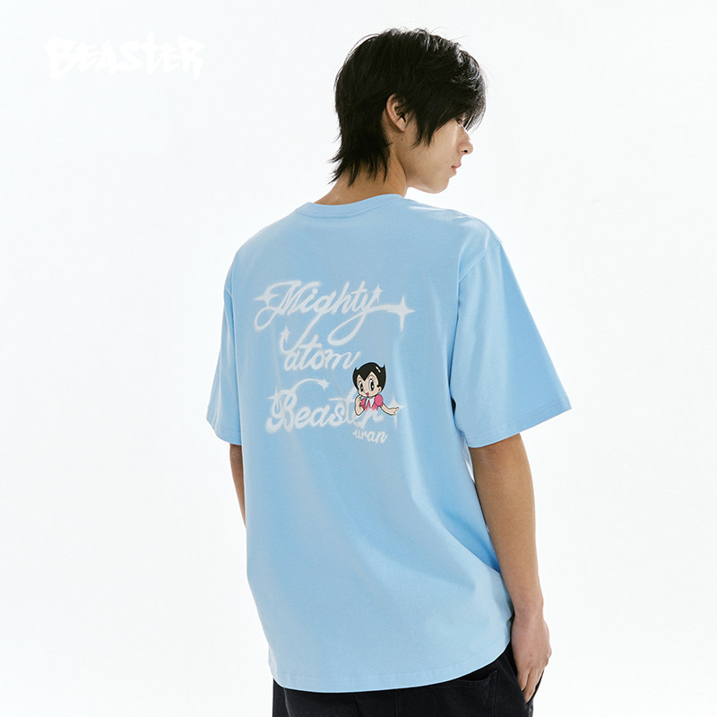 【铁臂阿童木联名】BEASTER卡通字母印花T恤夏新款纯棉重磅上衣