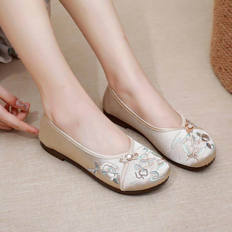 正品春秋新款圆头浅口绣花妈妈鞋平古底人鞋复风懒服鞋老北京布汉