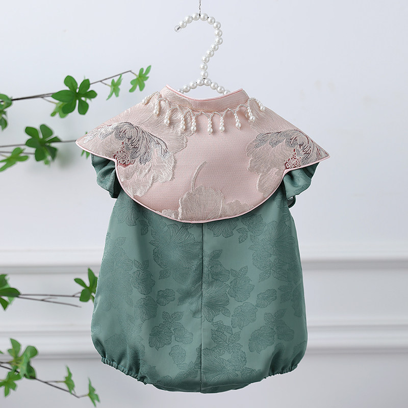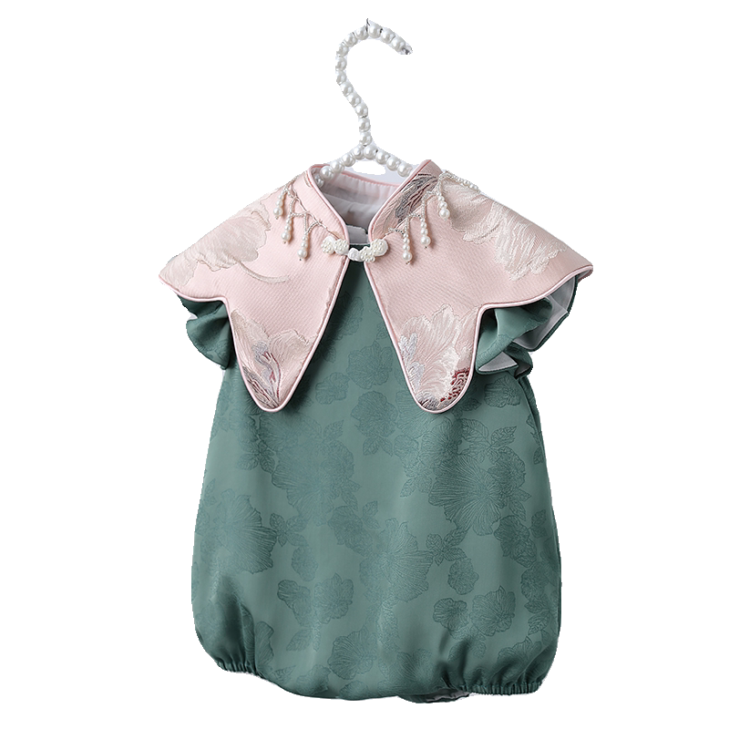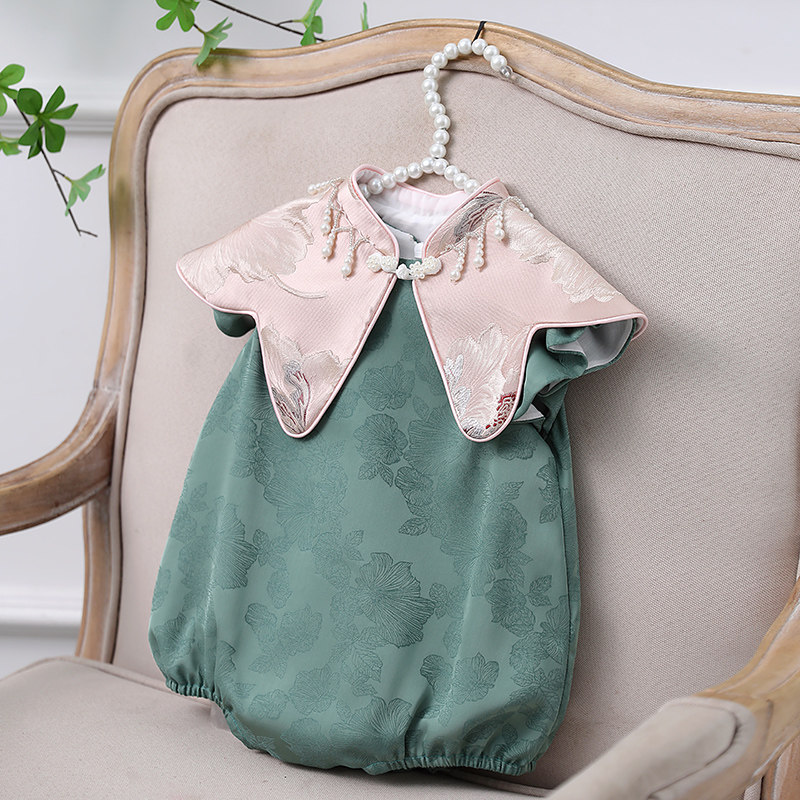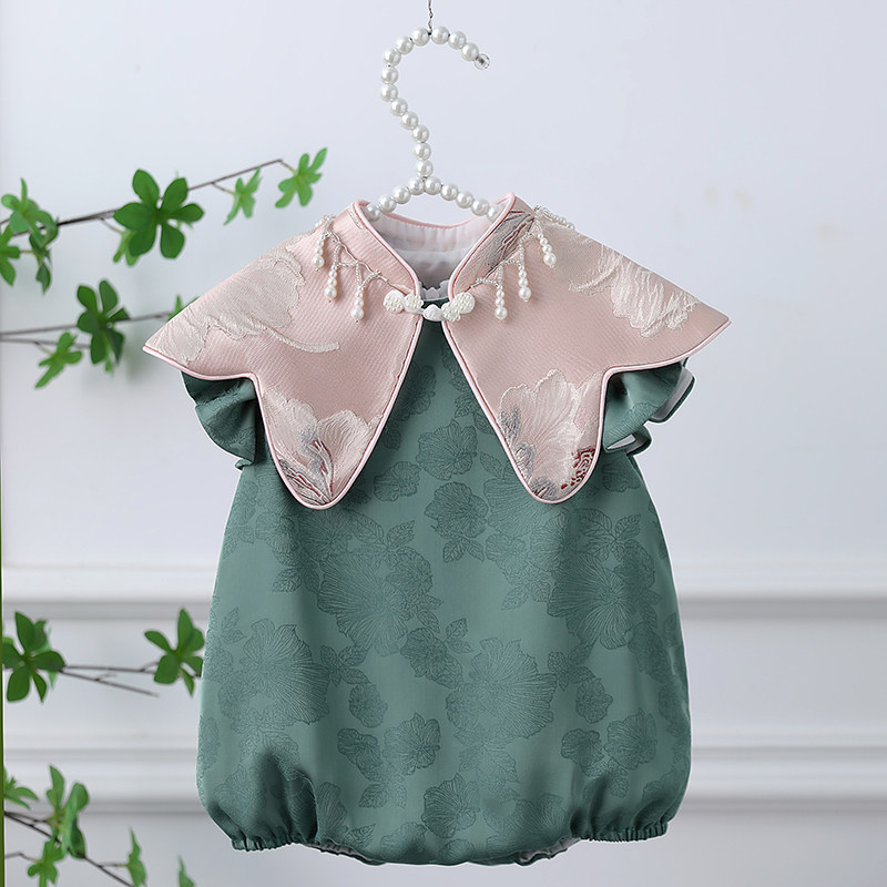 一周岁女宝宝礼服冠衣绿色新中式旗袍国风儿童抓周宴婴儿衣服夏季