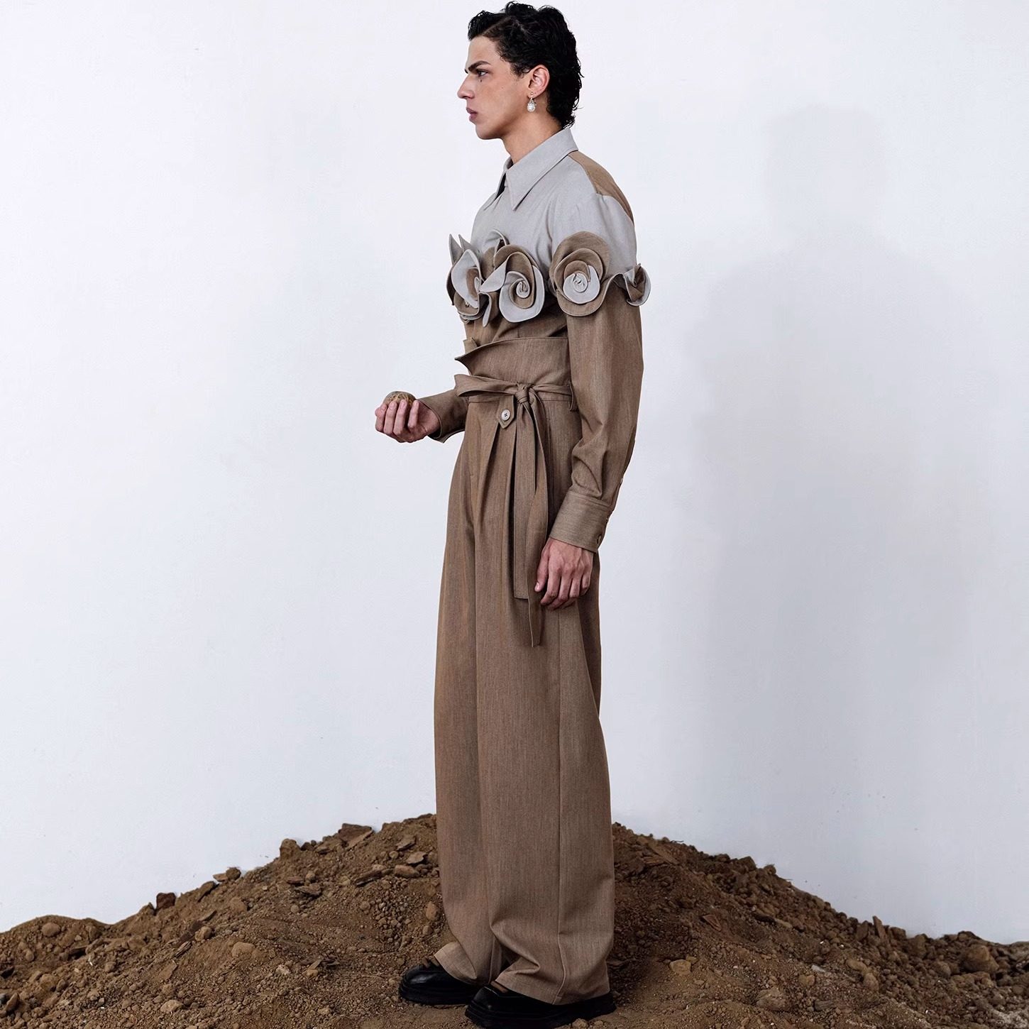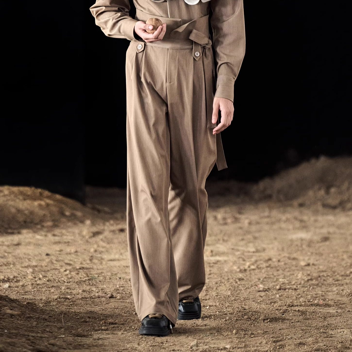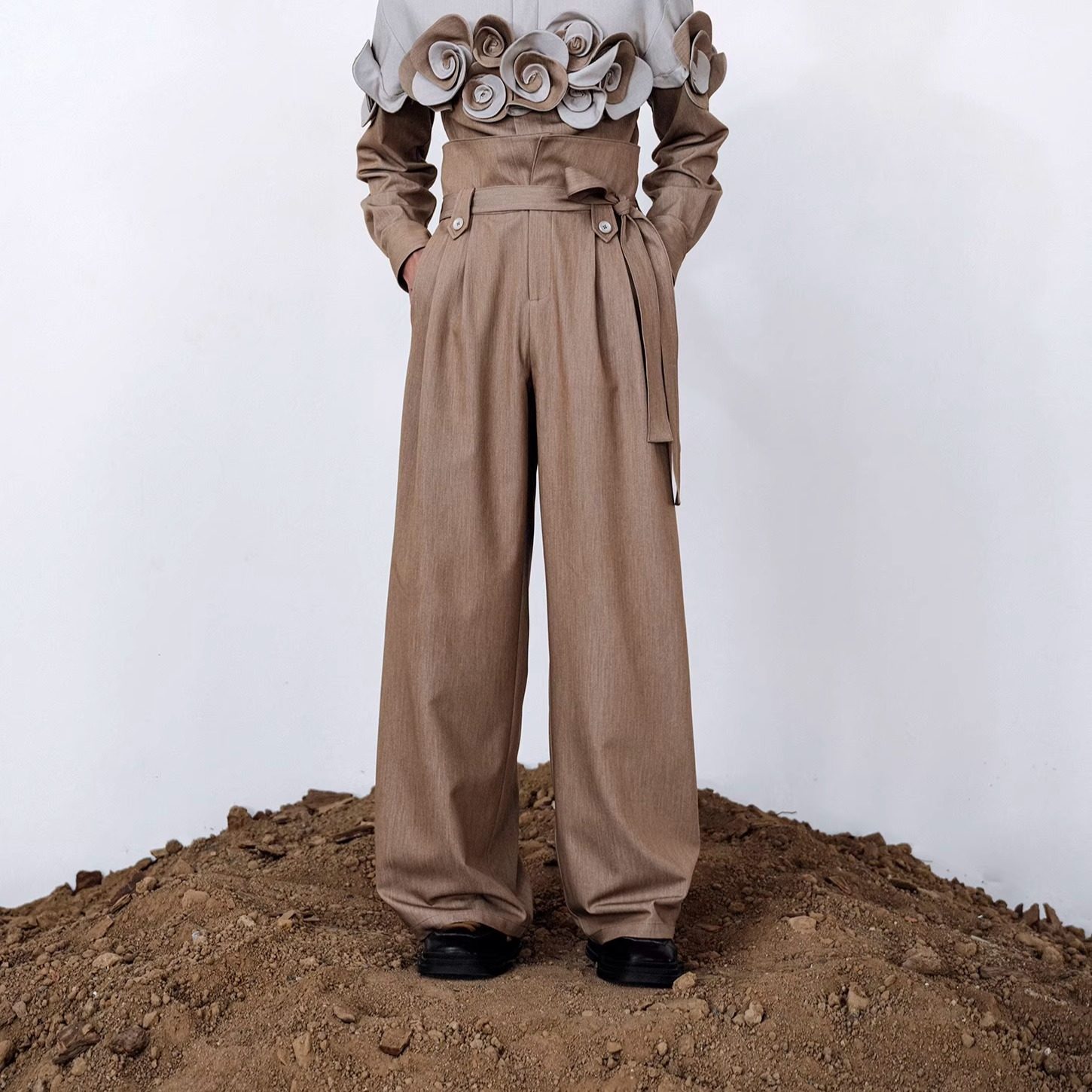 松穆 法式高腰宽松直筒潮流时尚纸袋裤 山谷少年独立设计师品牌