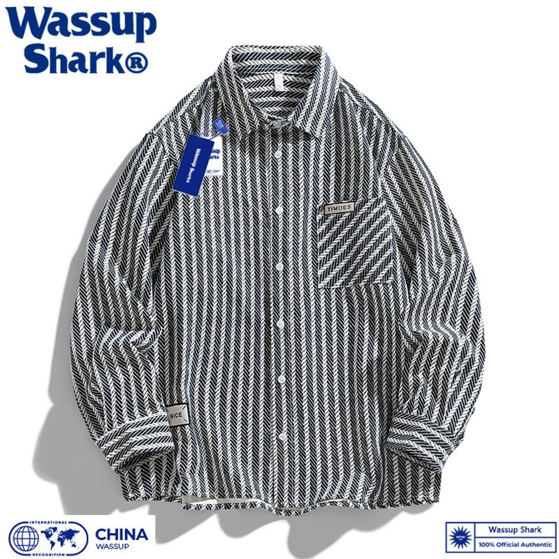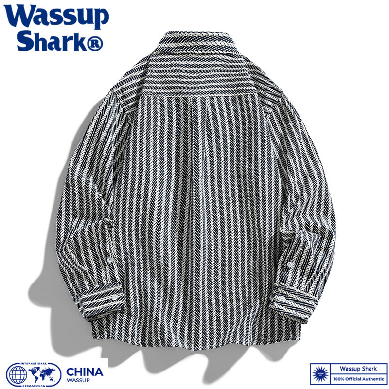 Wassup Shark日系条纹复古衬衫男春秋牛仔提花夹克外套休闲衬衣女