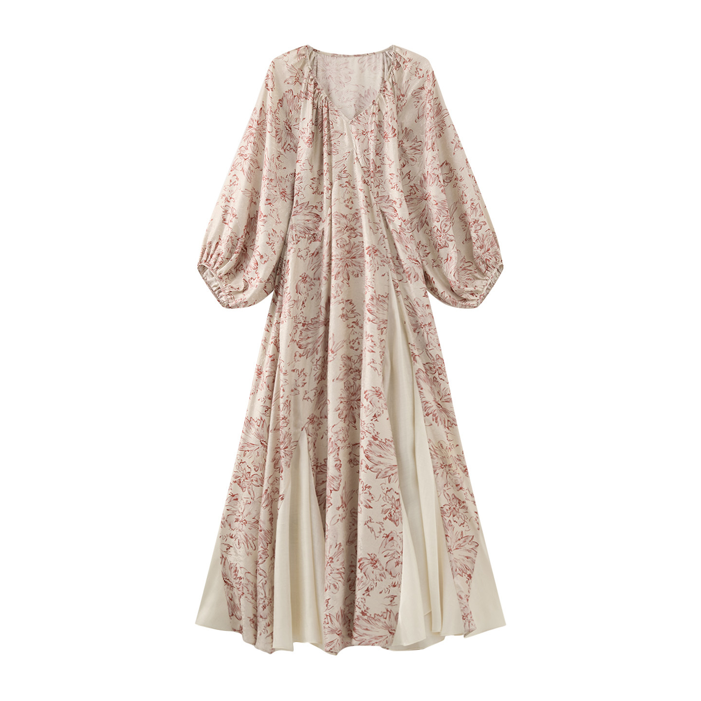 JINYU矜羽【绯花】V 领长裙 遮肉显瘦碎花裙女连衣裙