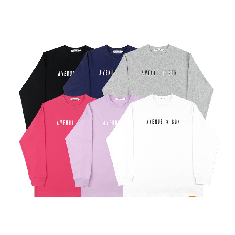 AVENUESON大道之子重磅圆领宽松休闲潮流简约字母LOGO彩色长袖T恤