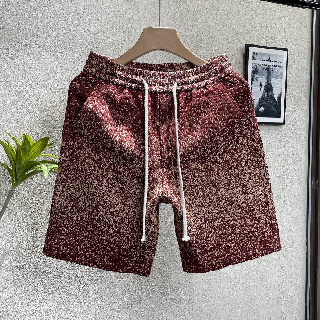 Pilotis美式复古民族风红色短裤夏季设计感小众夏威夷情侣五分裤