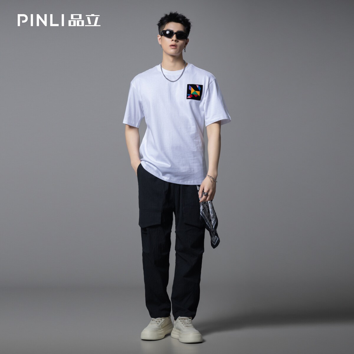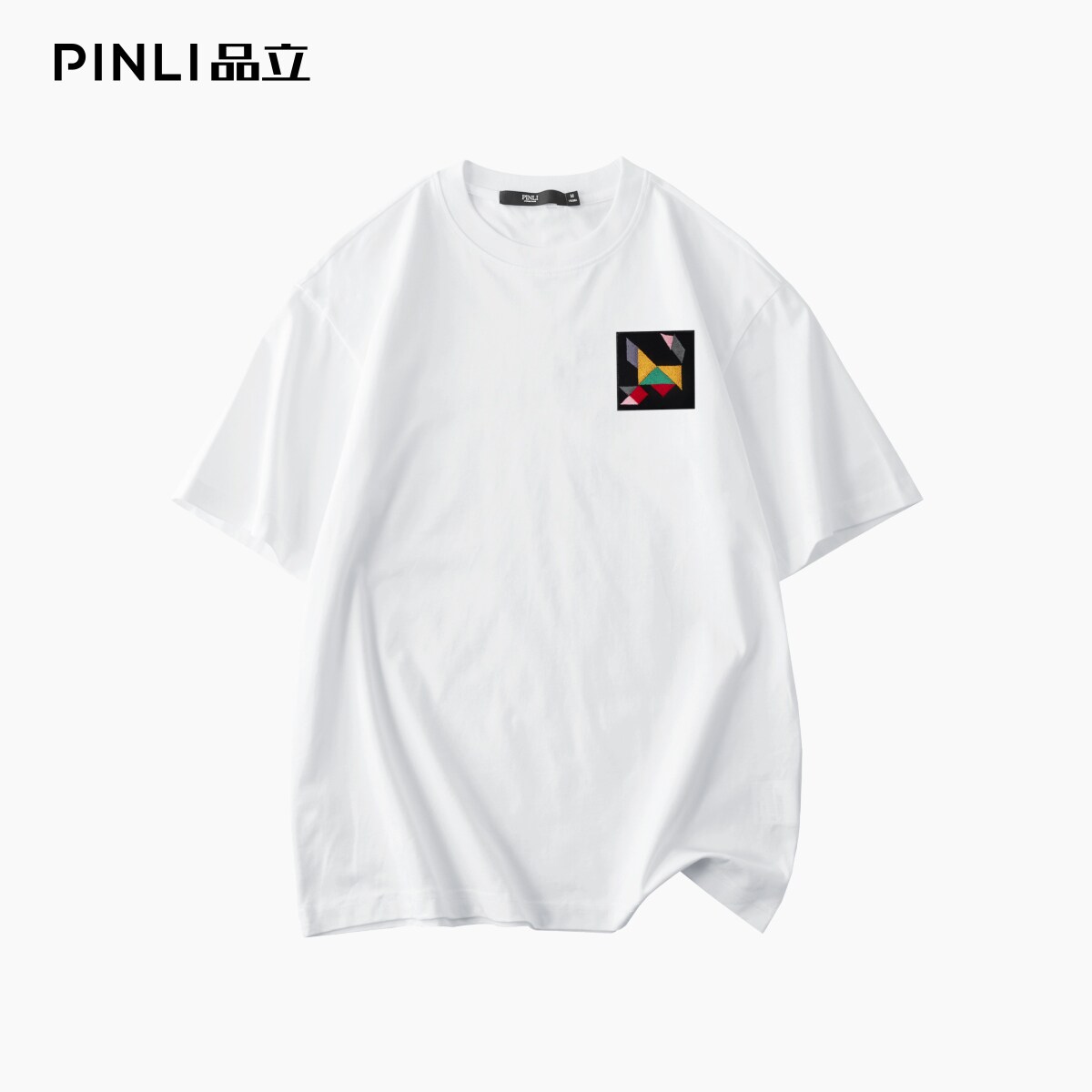--------------------- PINLI品立夏季新款男士贴布绣花落肩圆领短袖T恤BG252111046 【原售价】69元 【现售价】53.8元 【推荐理由】