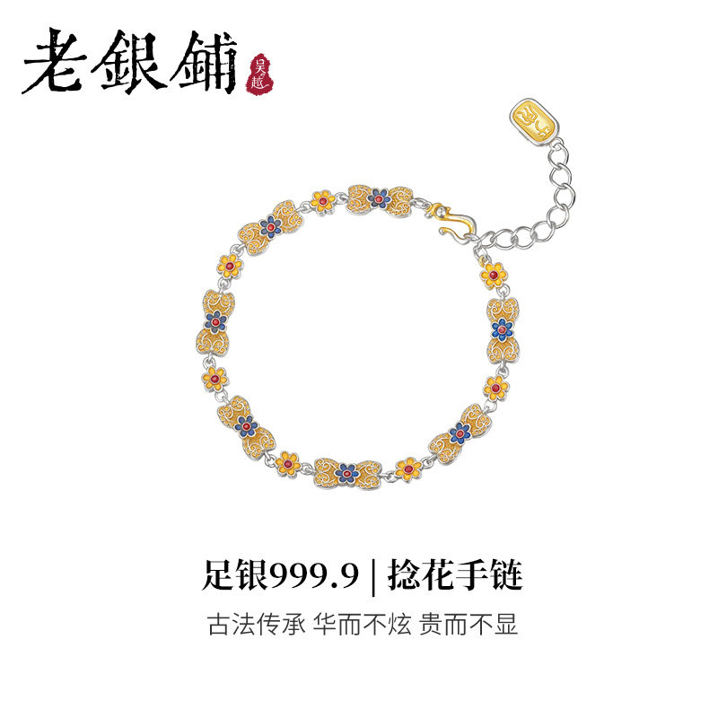 --------------------- 吴越老银铺足银9999捻花手链国潮气质珐琅彩银手链描金七夕节礼物 【原售价】482元 【现售价】409元 【推荐理由】