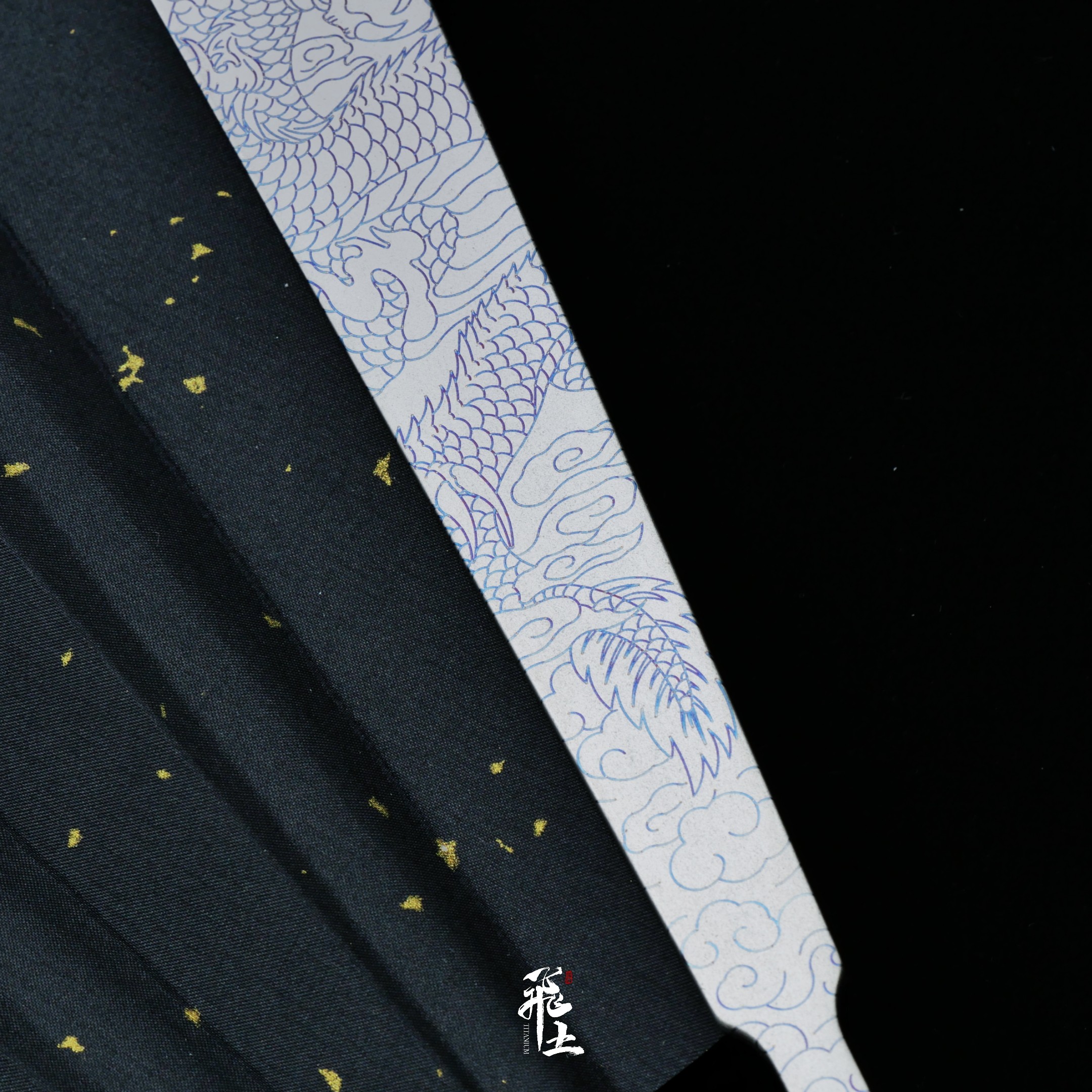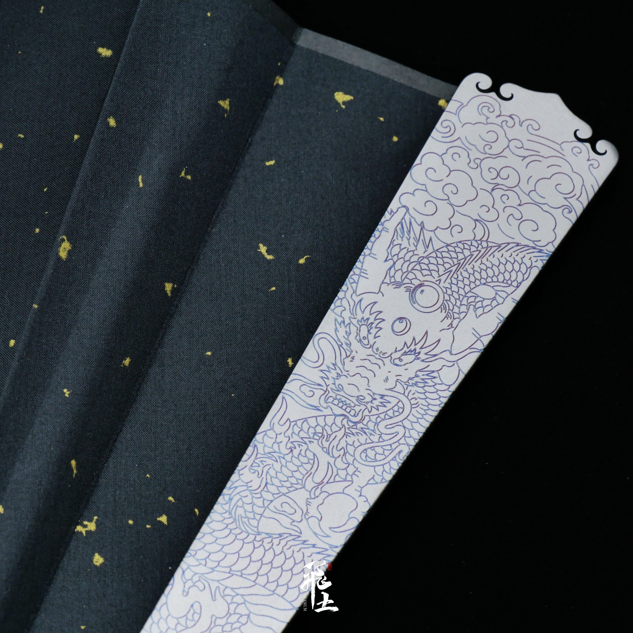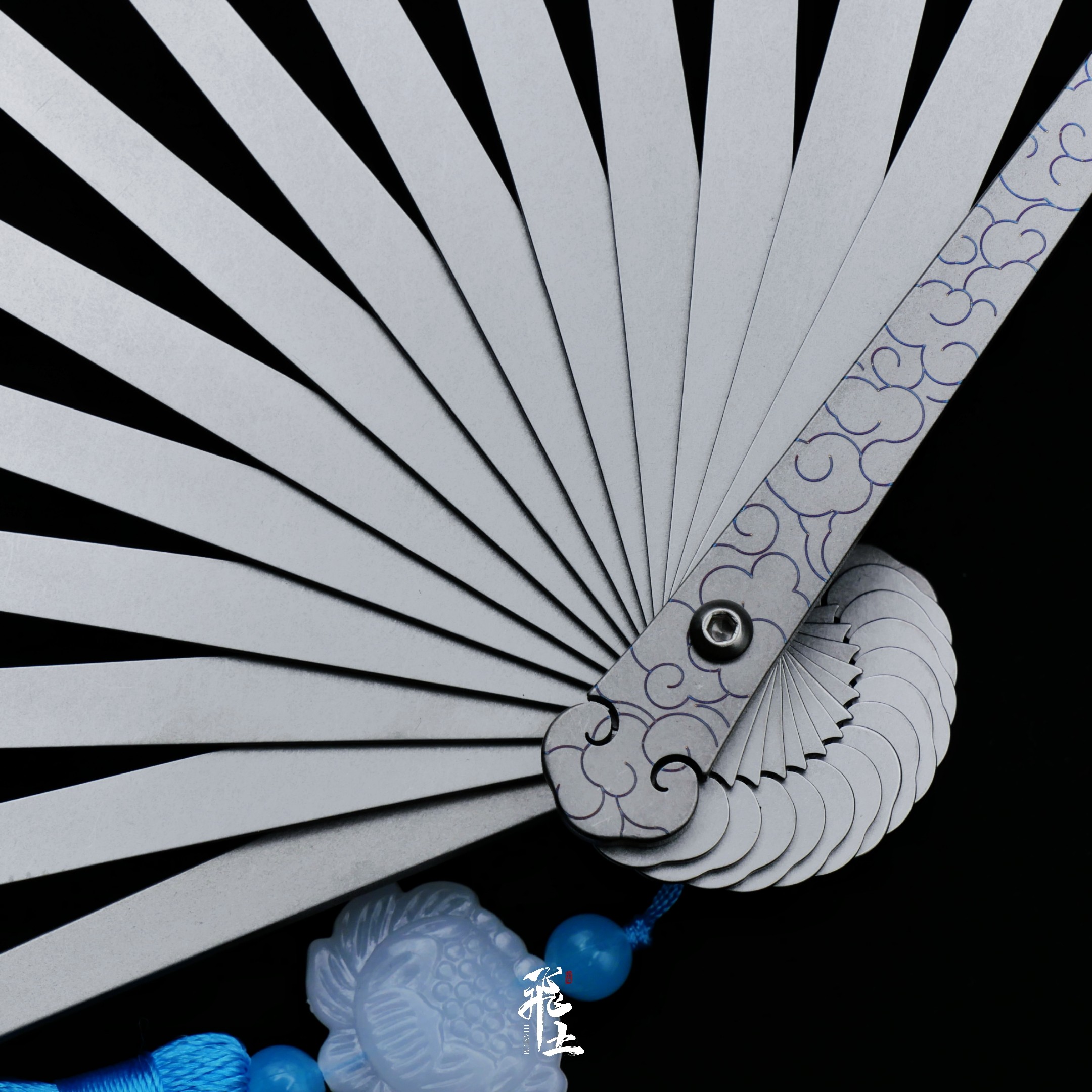 盘龙钛合金折扇文玩古风雕刻便携绢布功夫太极防身定制硬钢铁扇子