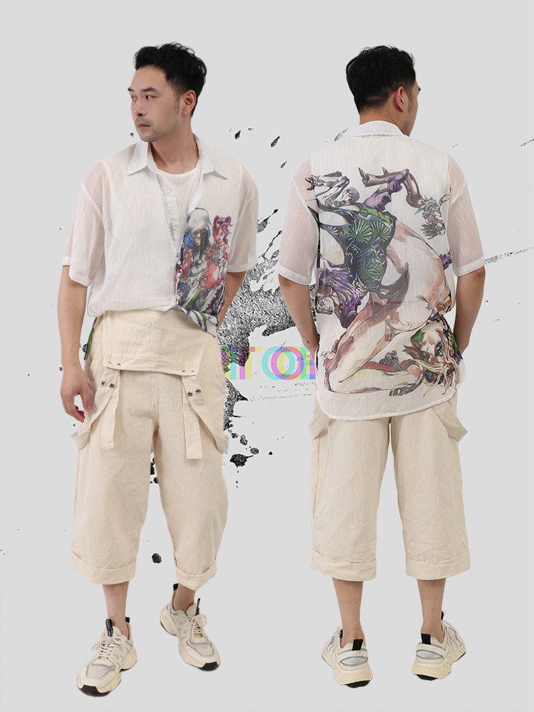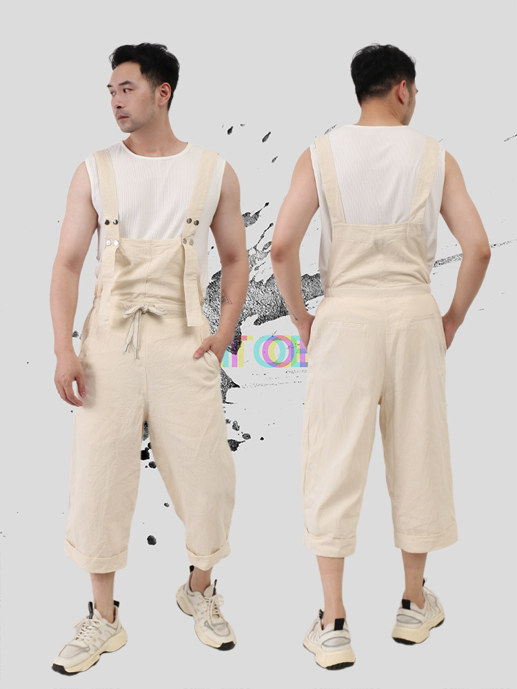 --------------------- smelt炼设计师原色麻料 加大透气夏日两穿个性七分松紧腰背带裤男 --------------------- --------------------- 【原价】299元 【券后价】255元