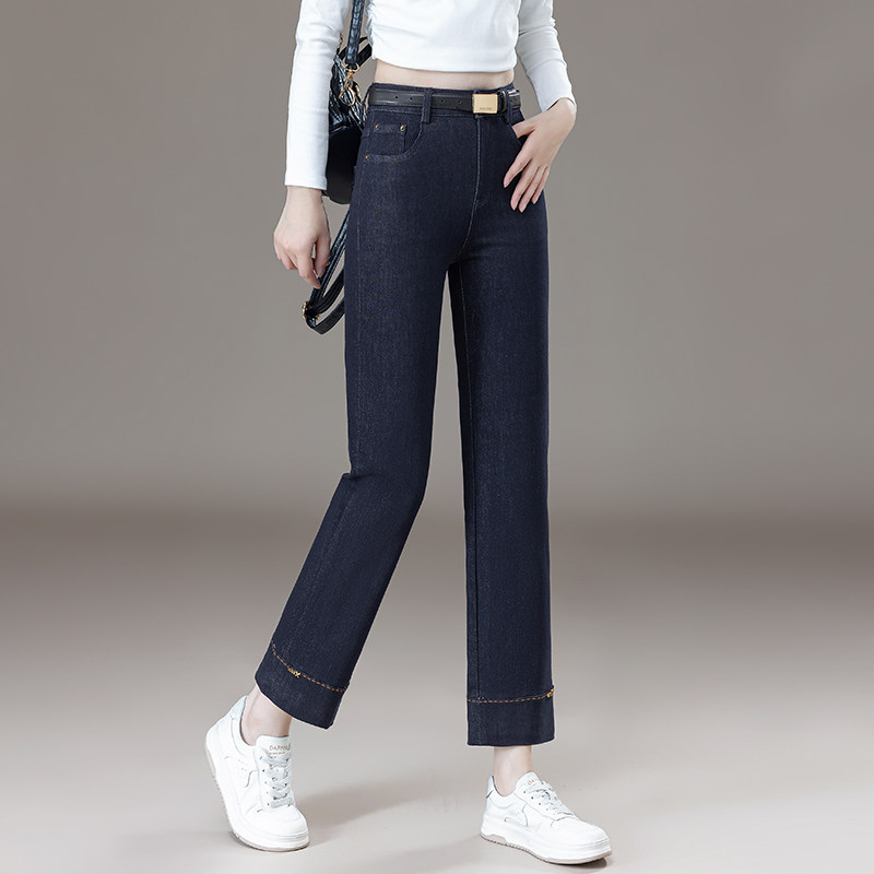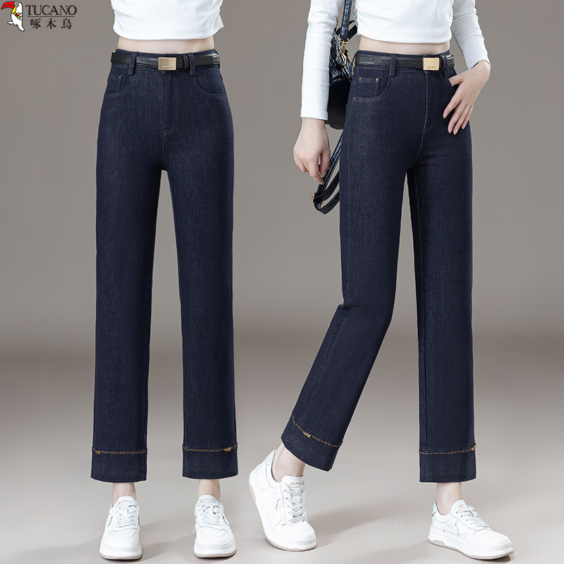啄木鸟品牌丹宁九分牛仔烟管裤2025秋冬新款小个子显瘦休闲直筒裤