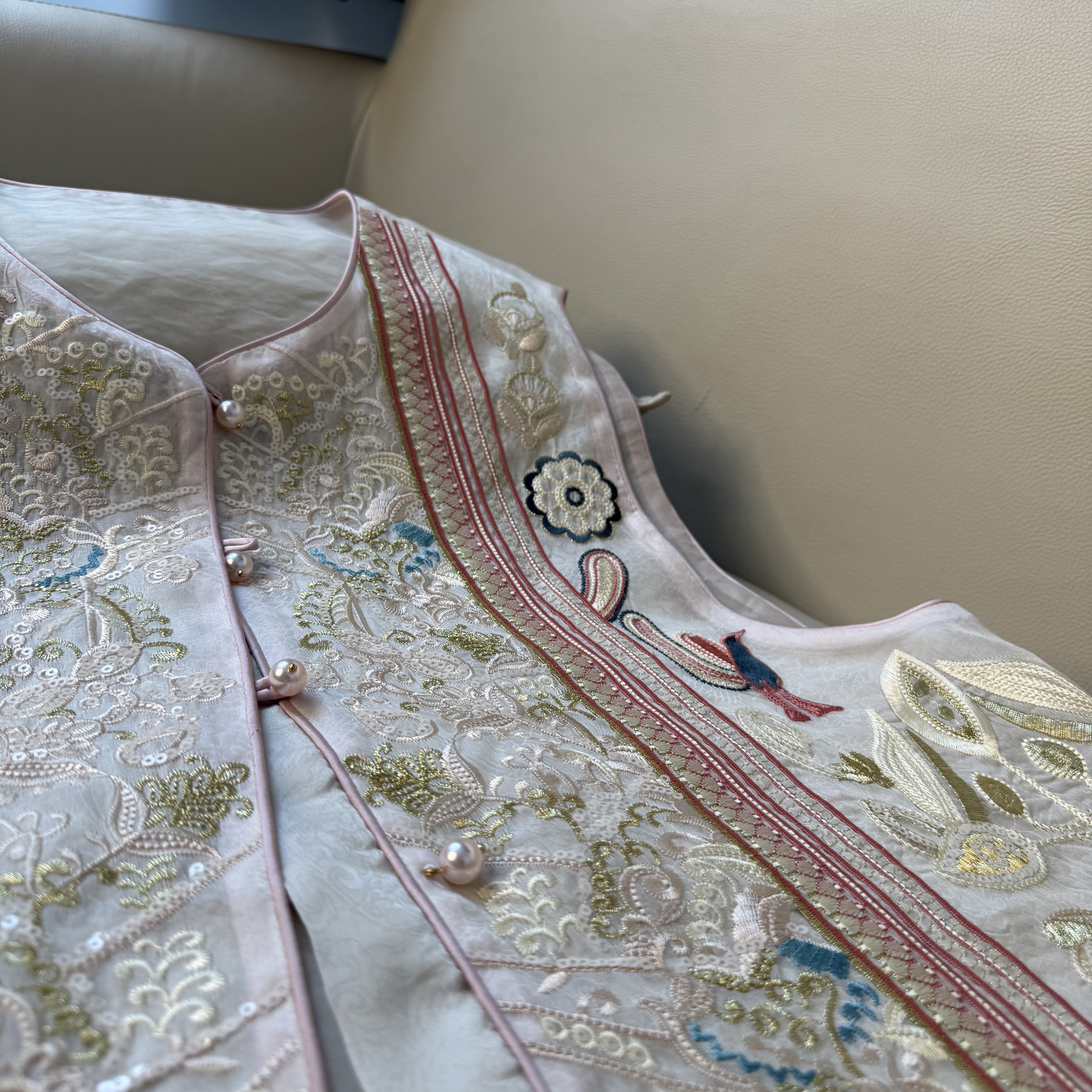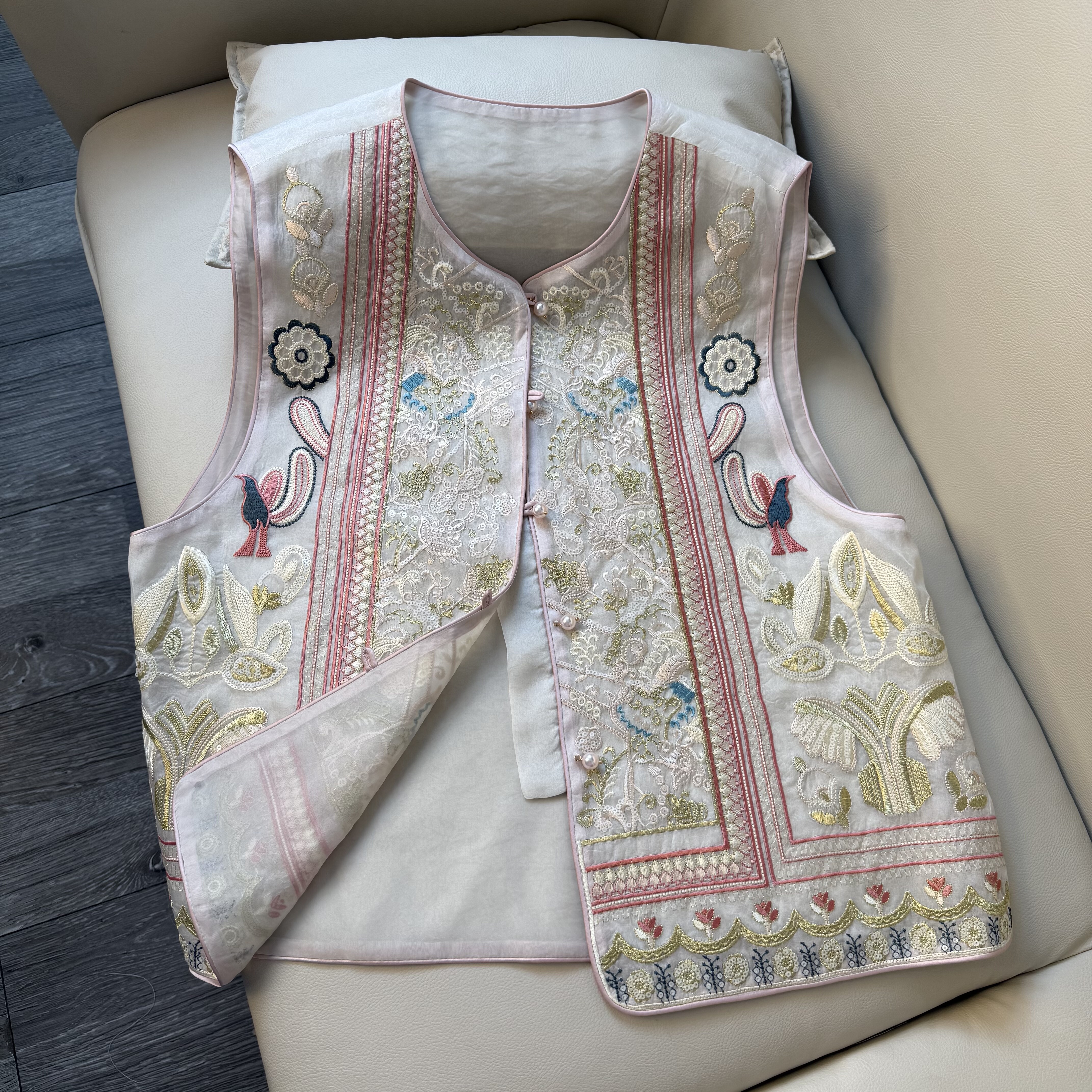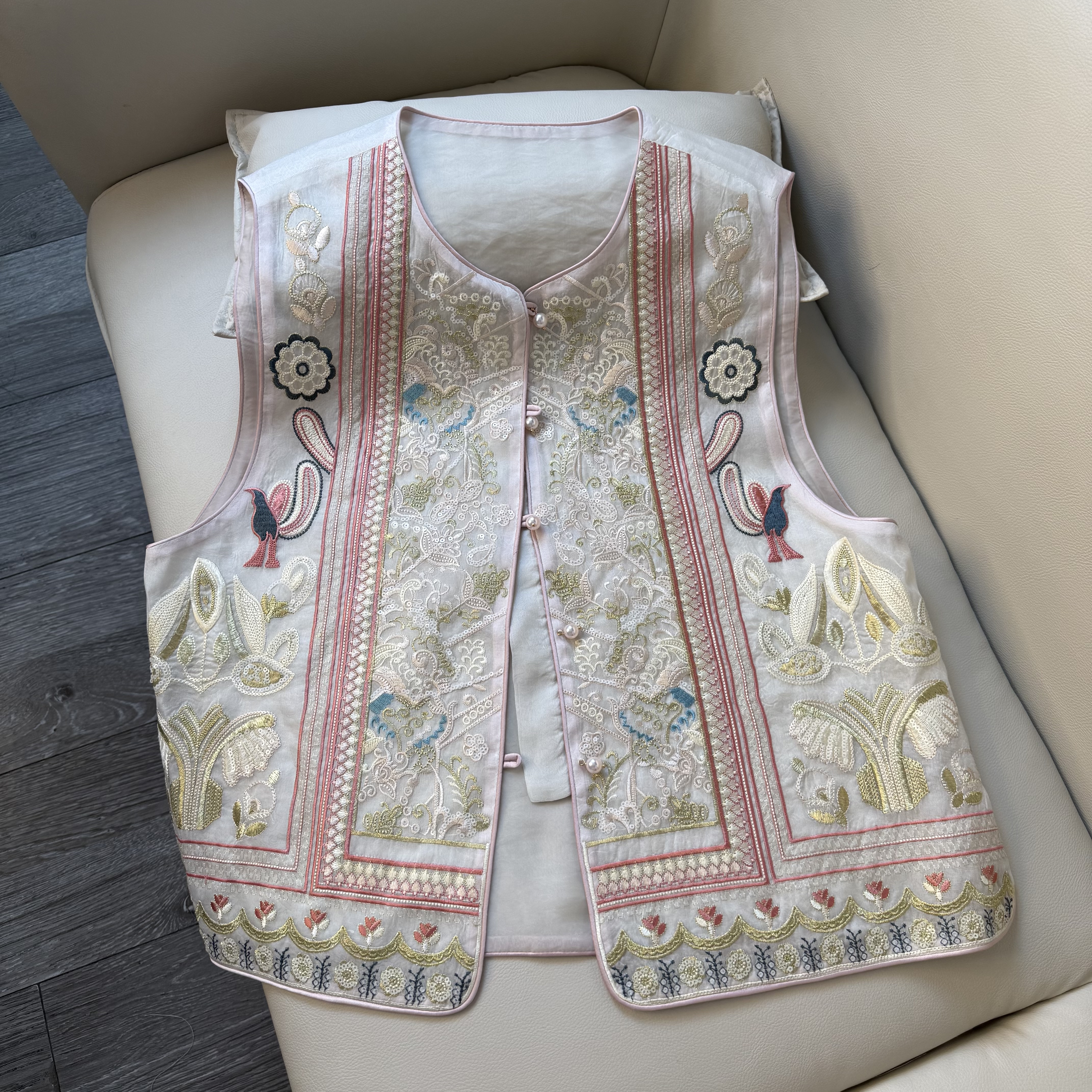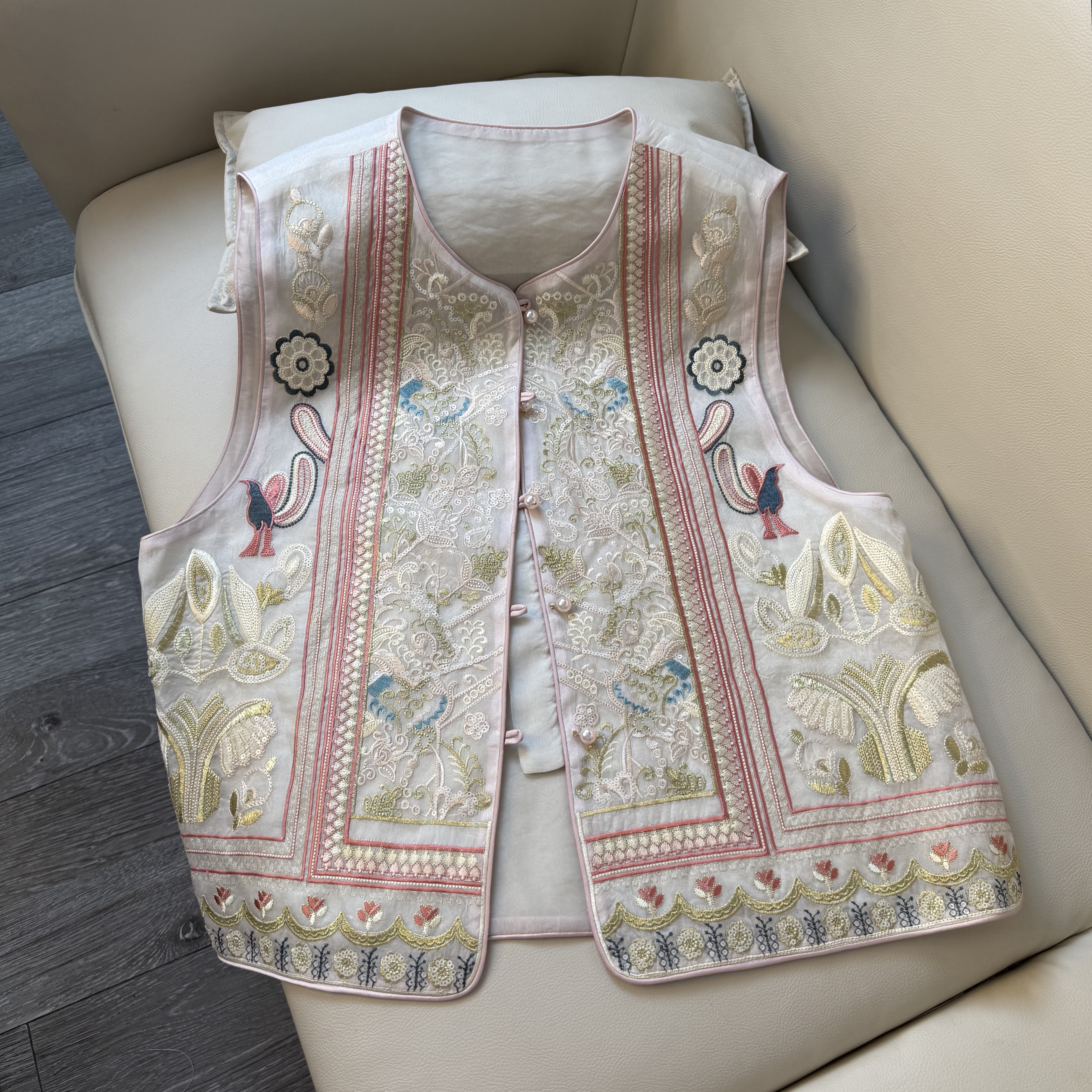 云禾锦国风新中式轻奢重工刺绣女马夹花卉图案气质减龄春夏薄上衣