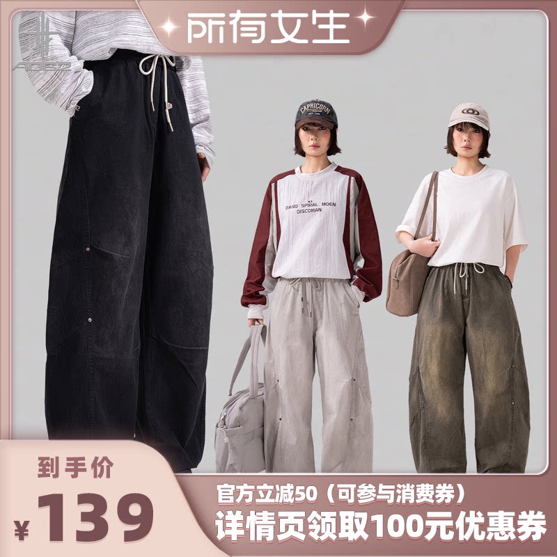 淘宝【所有女生直播间】AOGZ水洗阔腿直筒工装裤男女百搭休闲运动长裤