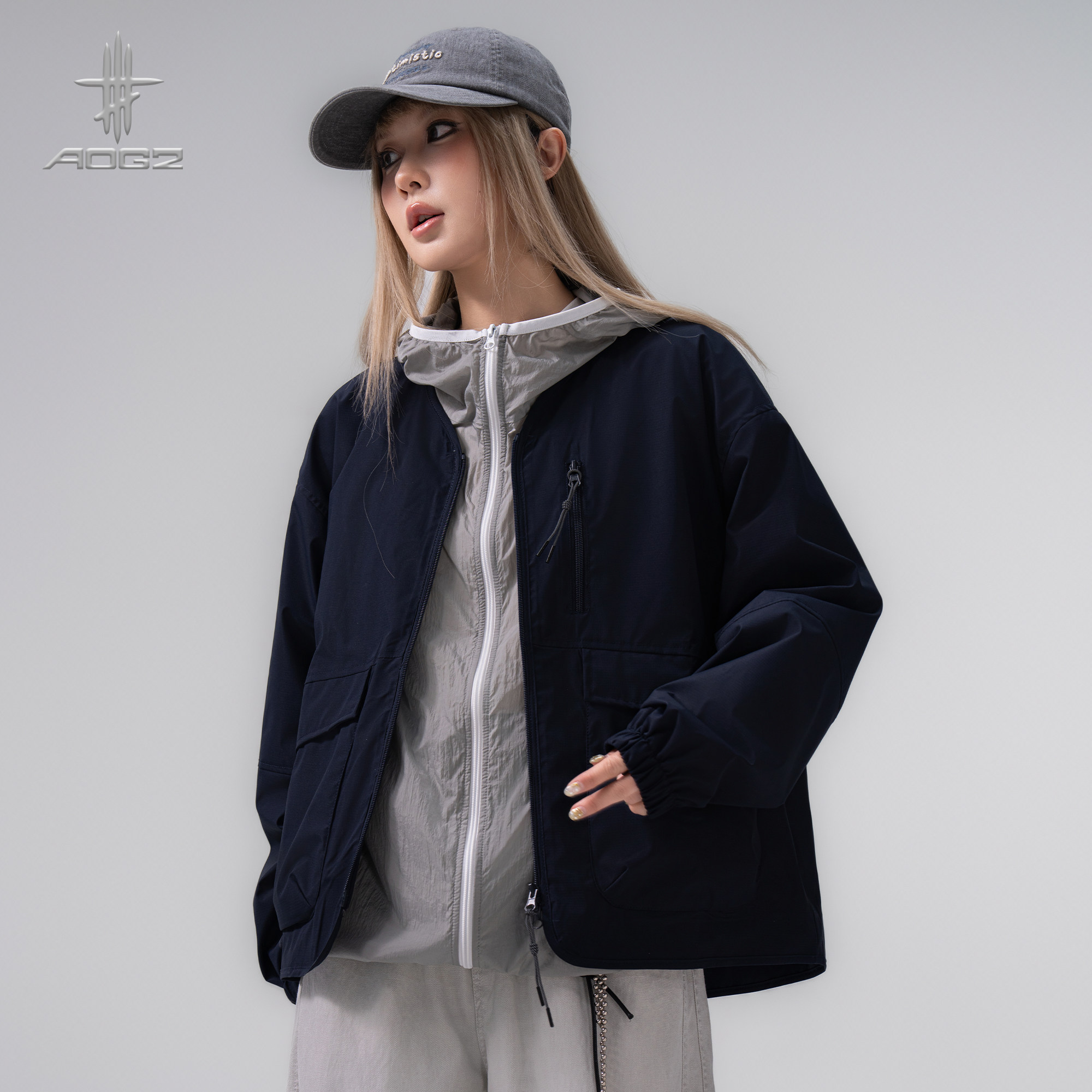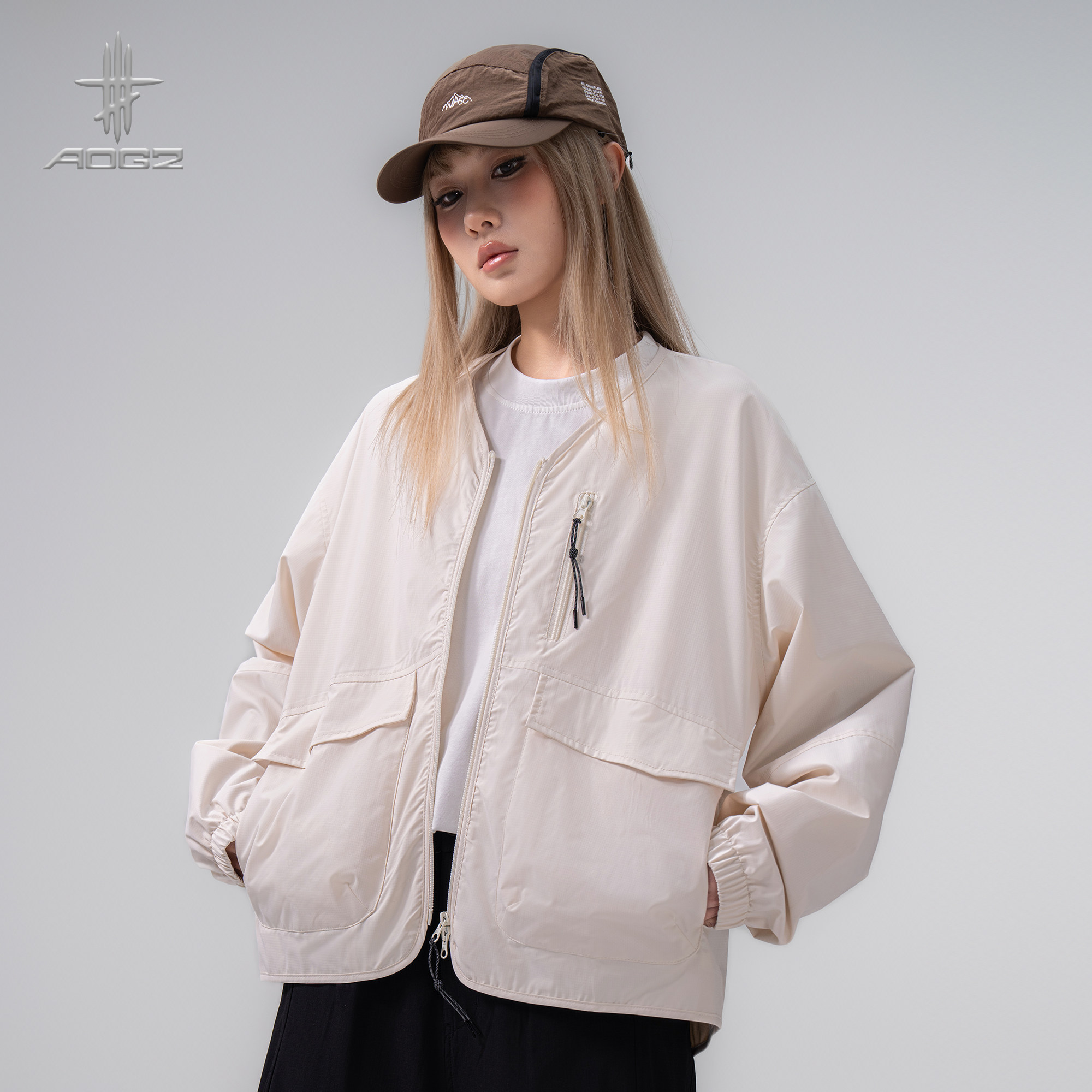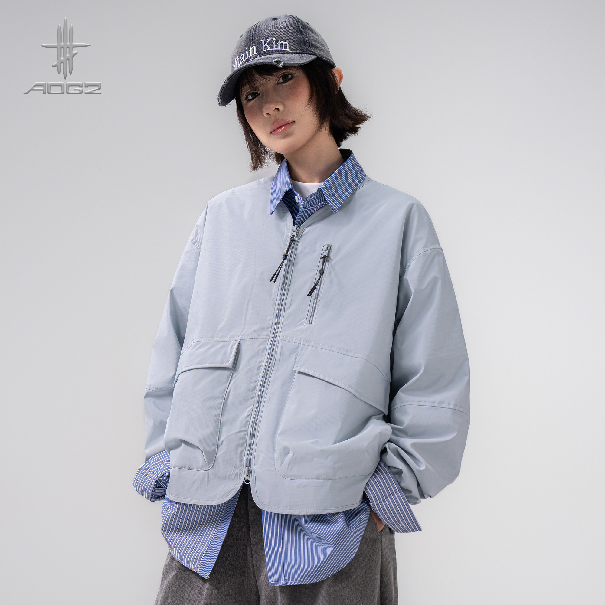 AOGZ户外多口袋工装外套男女春季新款宽松百搭设计感飞行员夹克潮