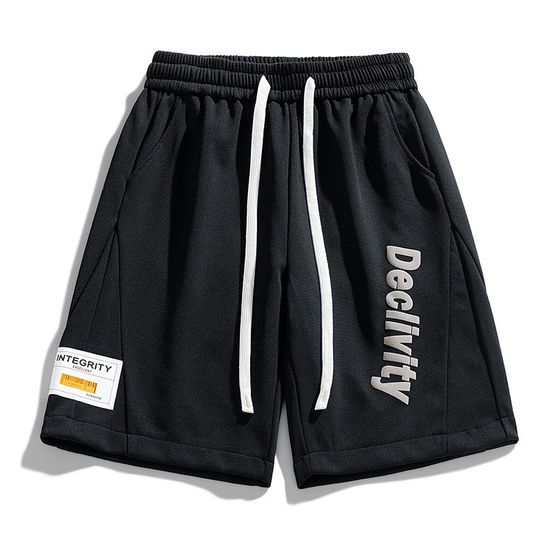 Amickles日系休闲针织卫裤潮流英文印花运动情侣款海滩五分裤