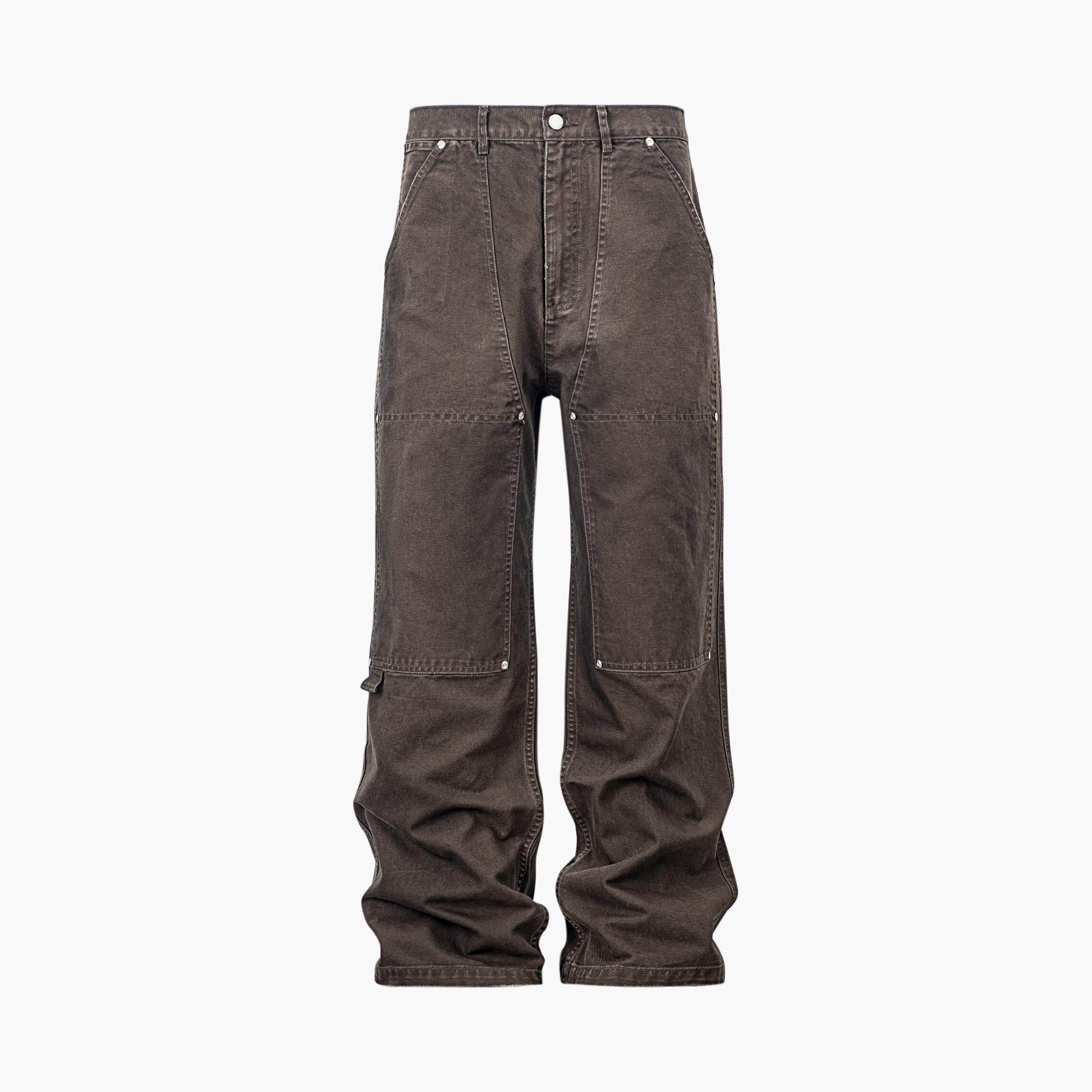ATHIRI 重水洗油污做旧vintage帆布直筒宽松双膝盖伐木工装裤