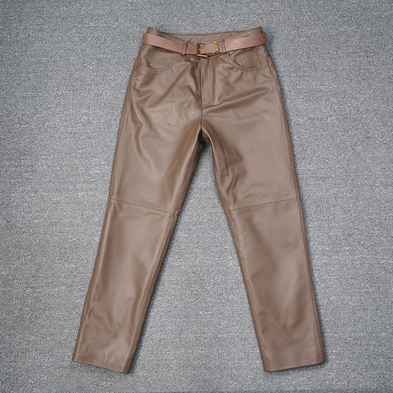 欧洲站2026春季新款真皮皮裤女绵羊皮靴裤小脚裤休闲长裤系腰带潮