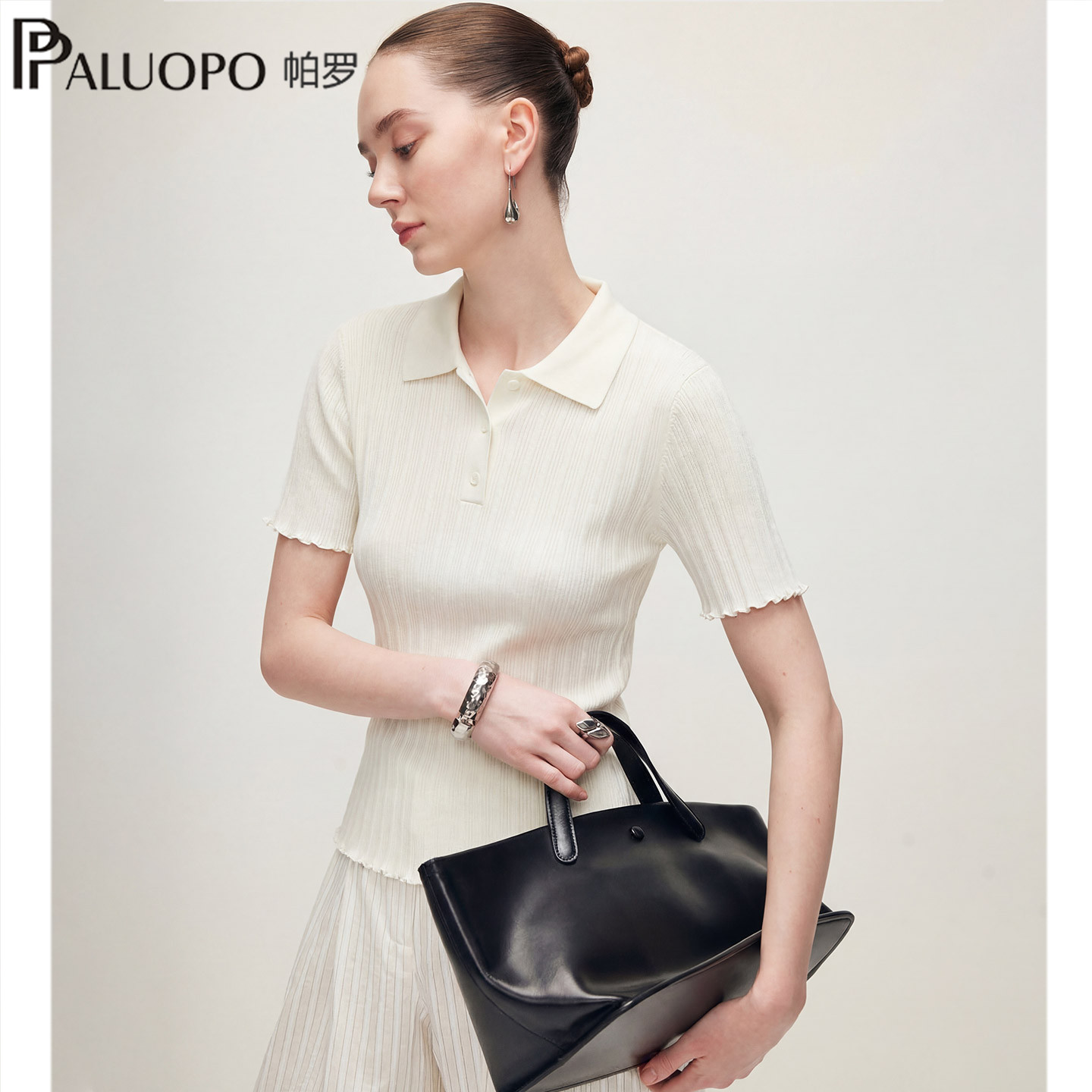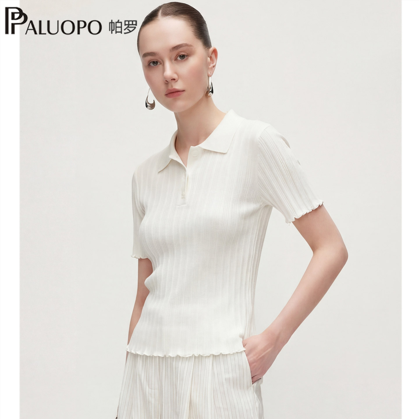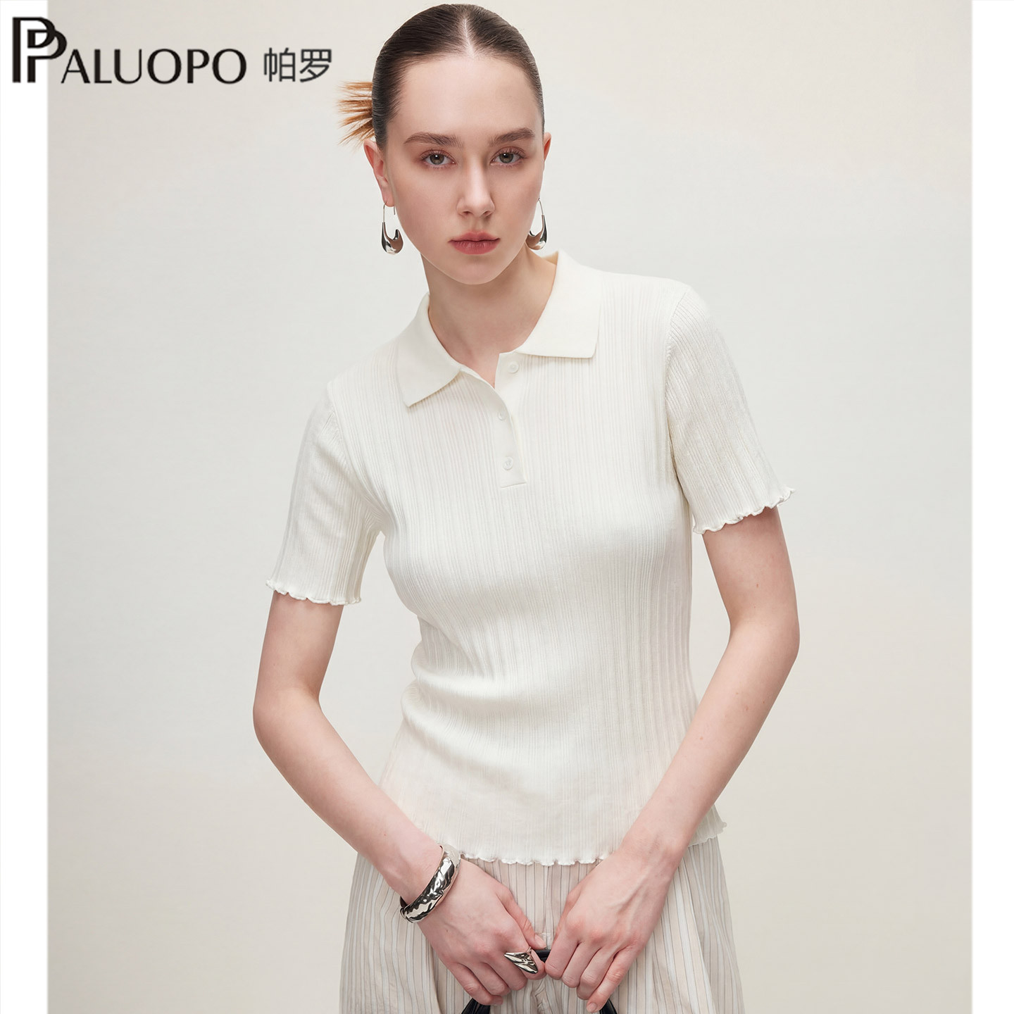 帕罗26春夏新款极简风polo领短袖T恤女装修身显瘦百搭针织上衣