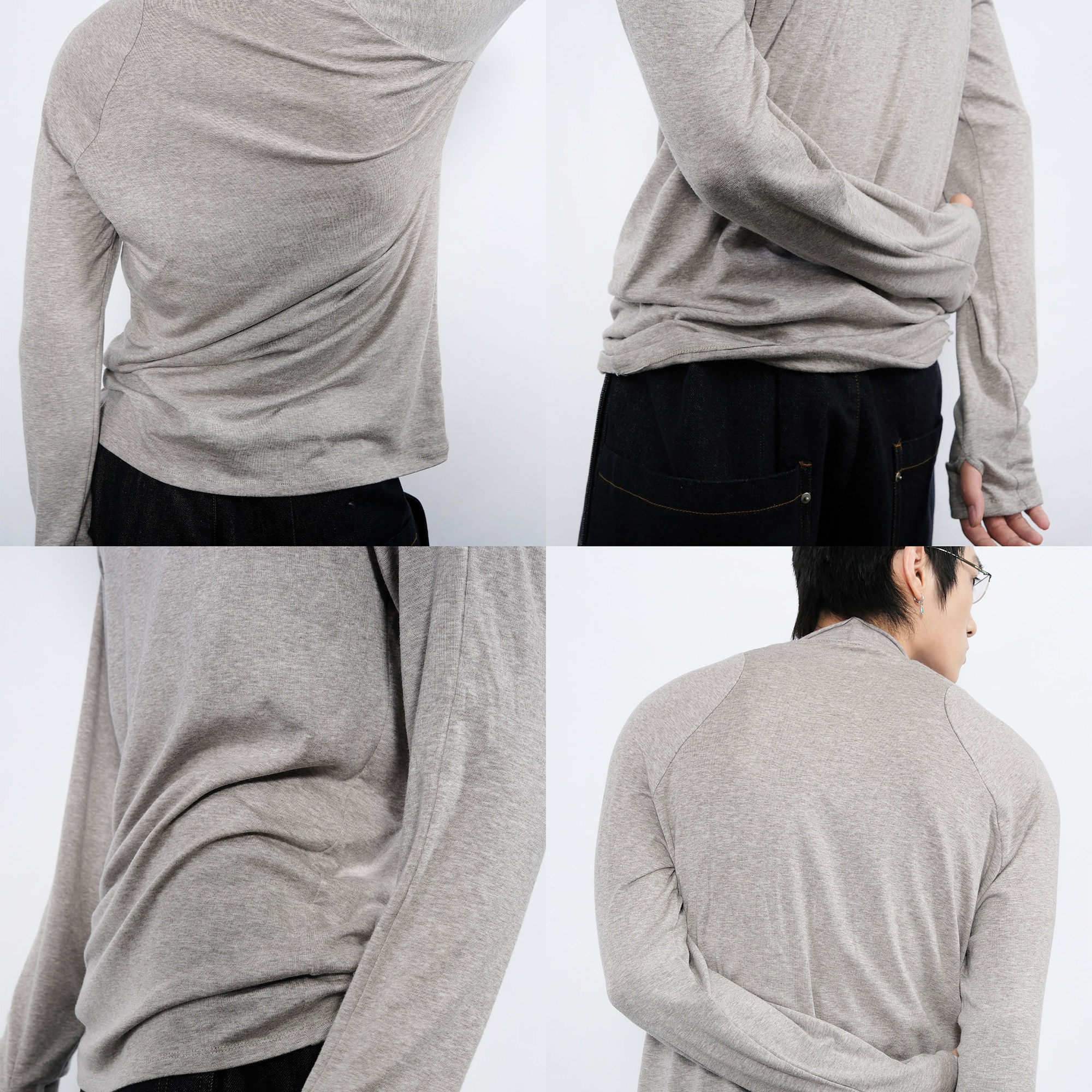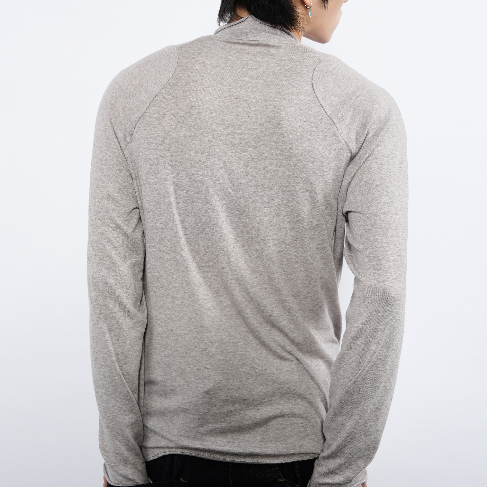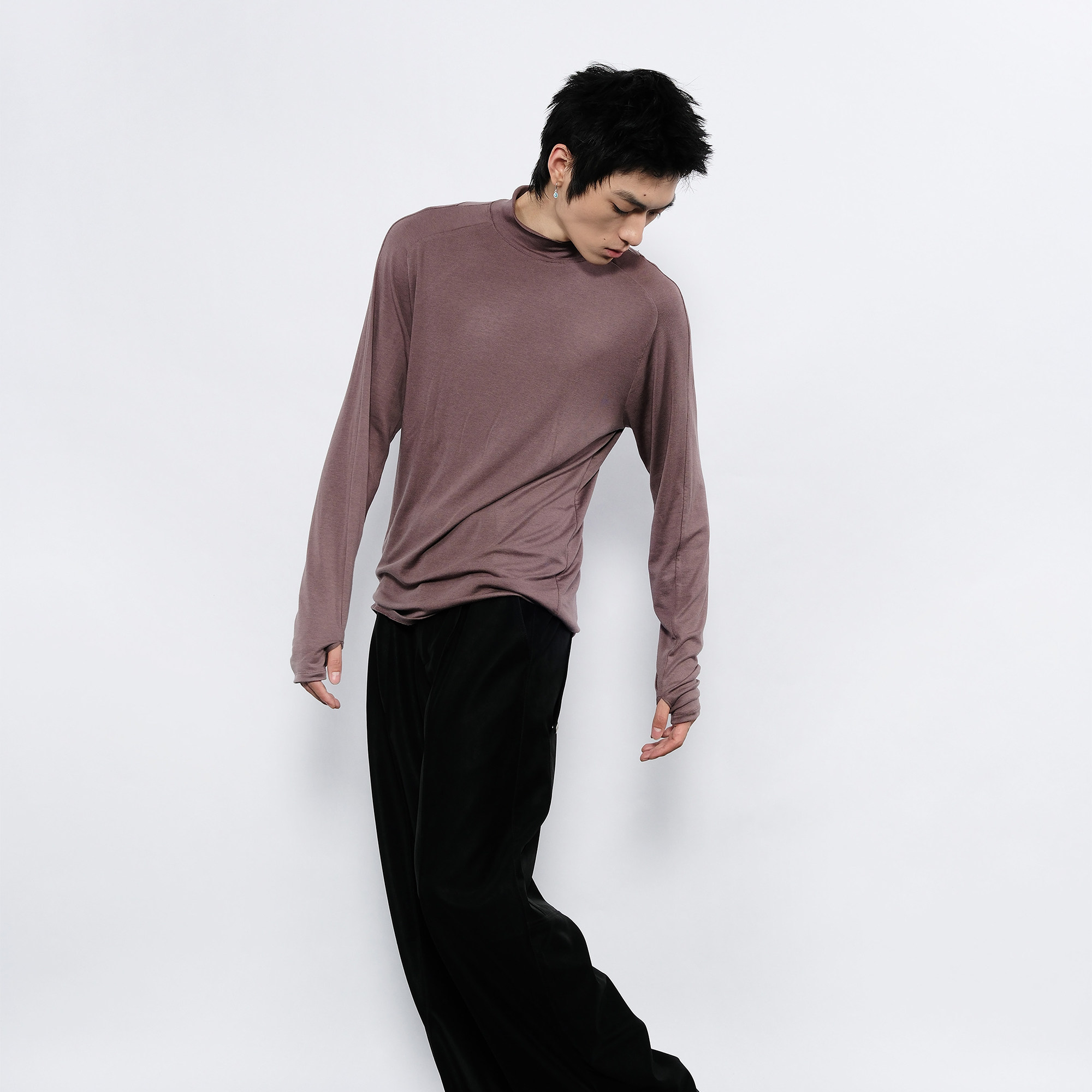 7440 37 1 双色美利奴羊毛卷边领口插肩袖分割打底羊毛衫
