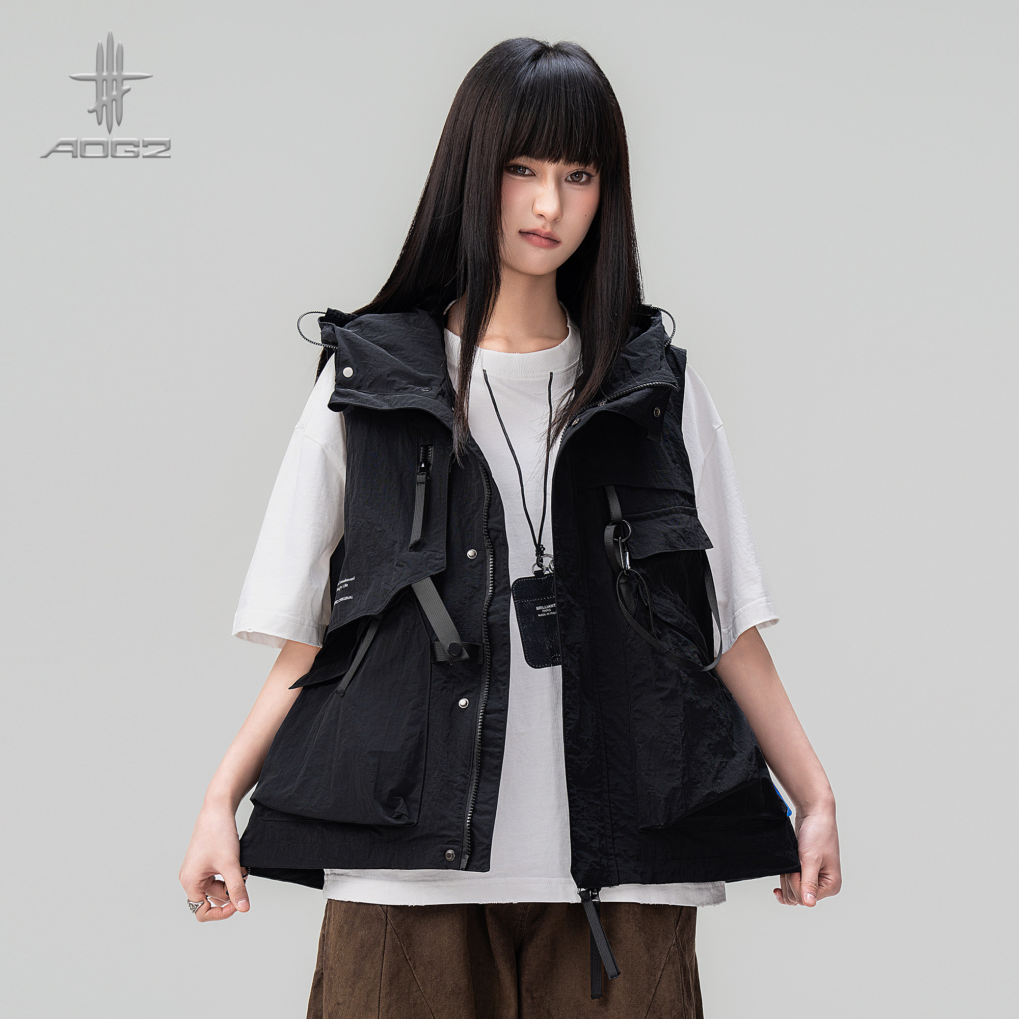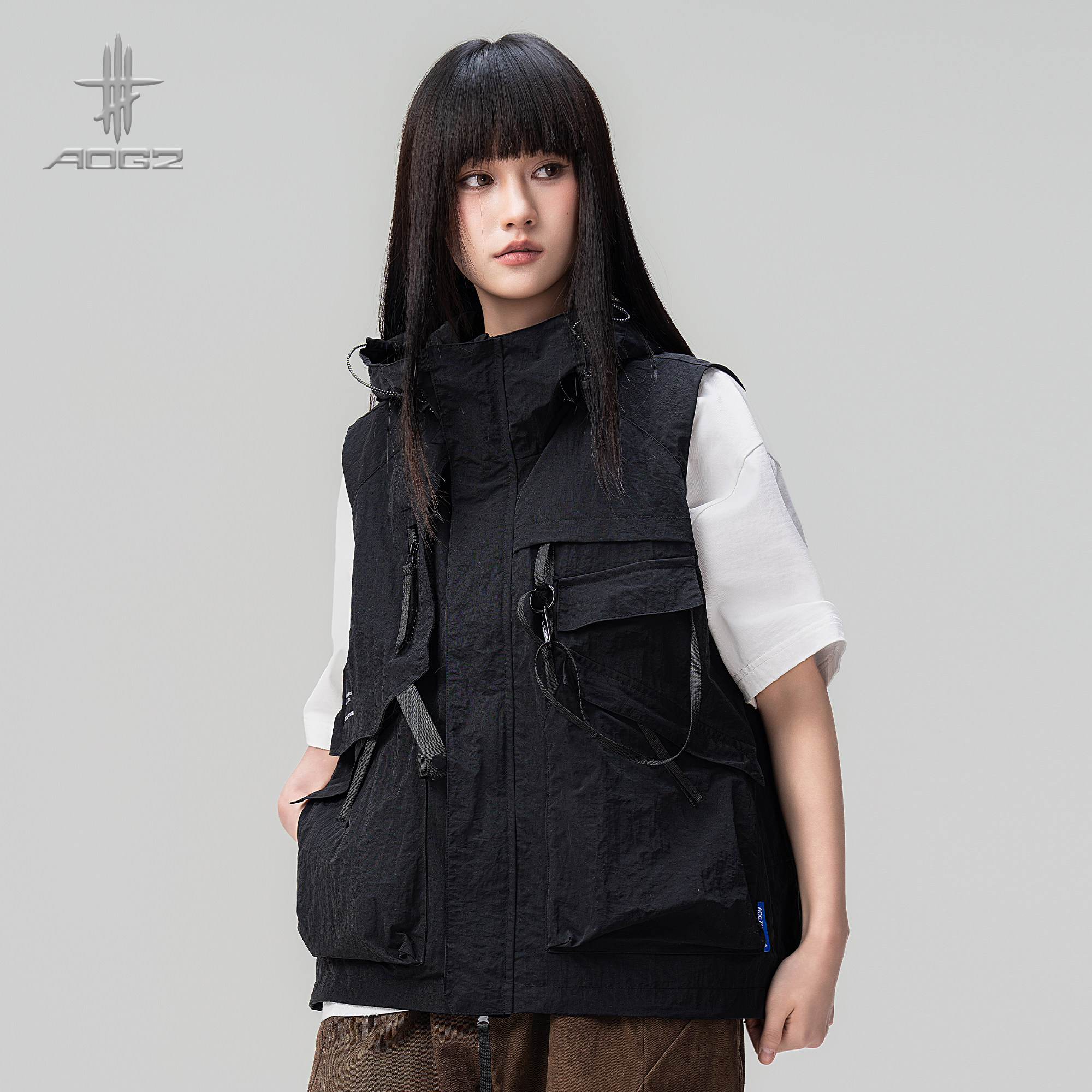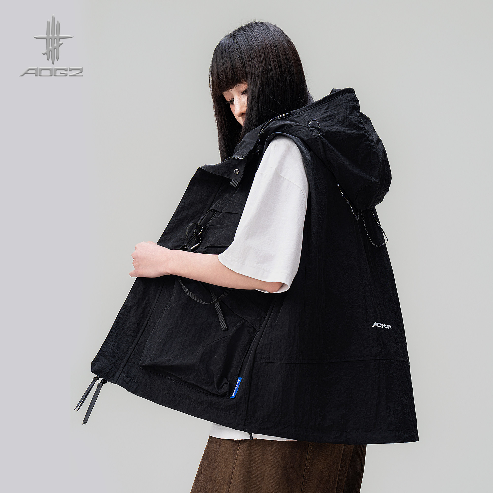 AOGZ连帽战术马甲男女春夏季2026新款工装机能风背心无袖坎肩外套