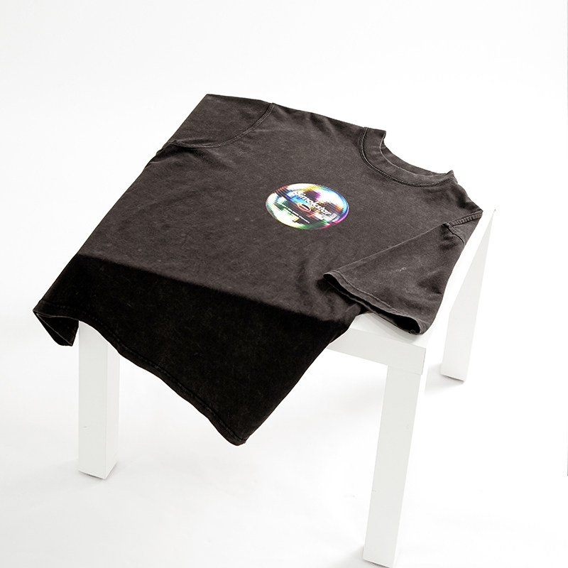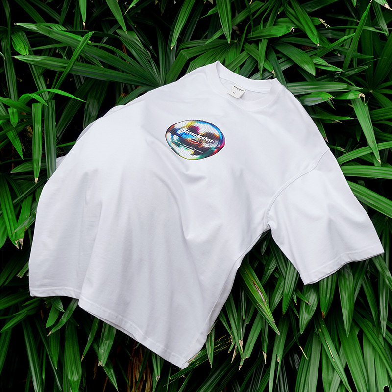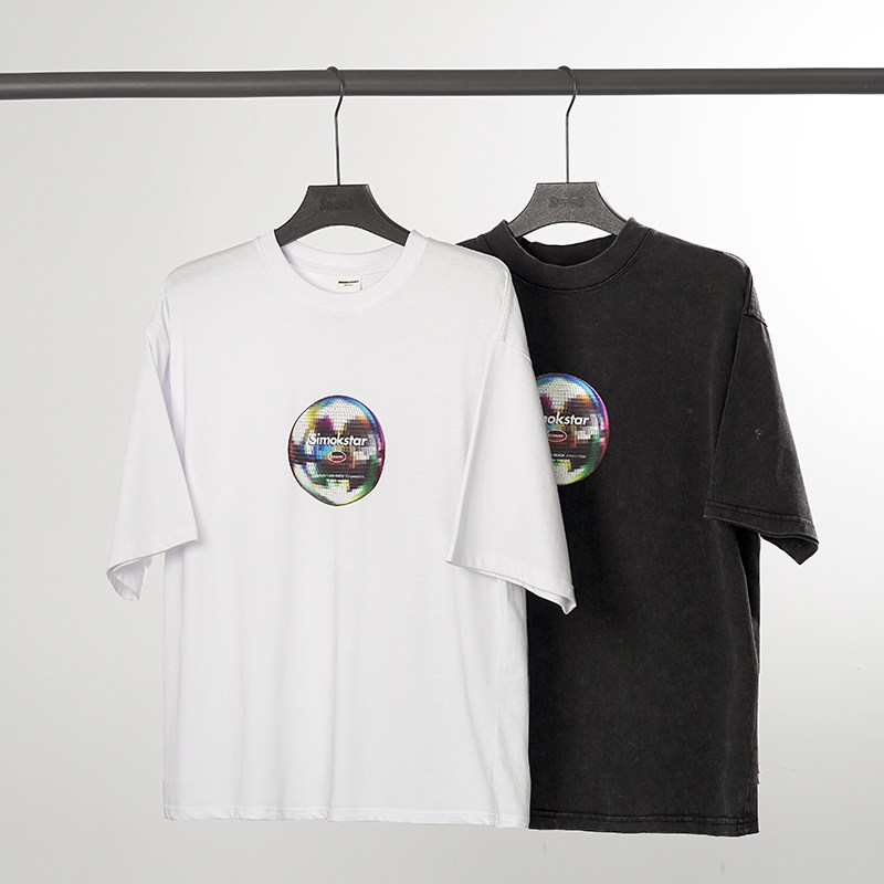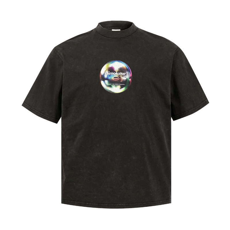 SIMOK24新品260g重磅做旧炒盐小领口复古简约灯球趣味百搭短袖T恤