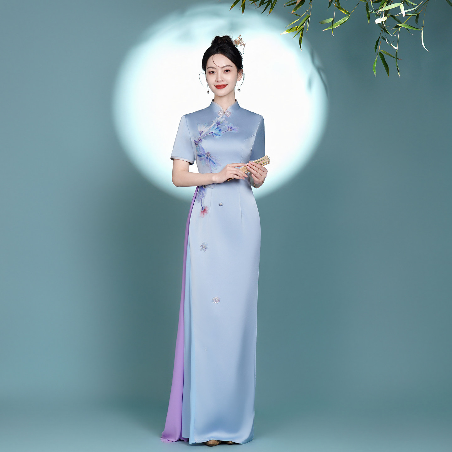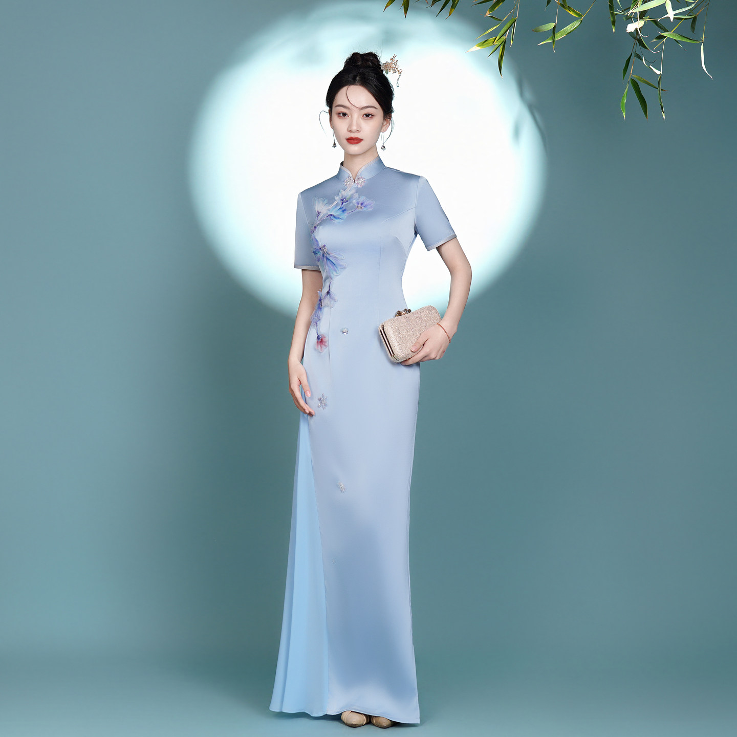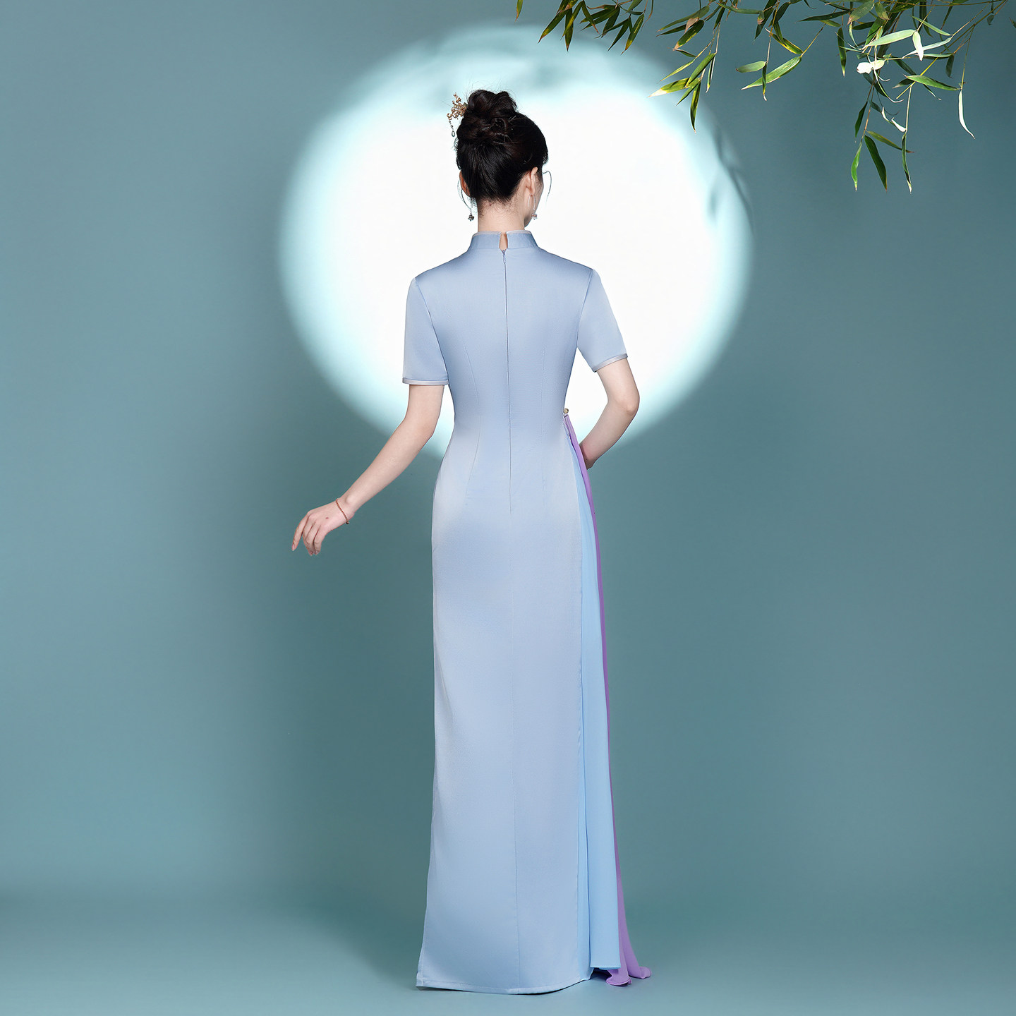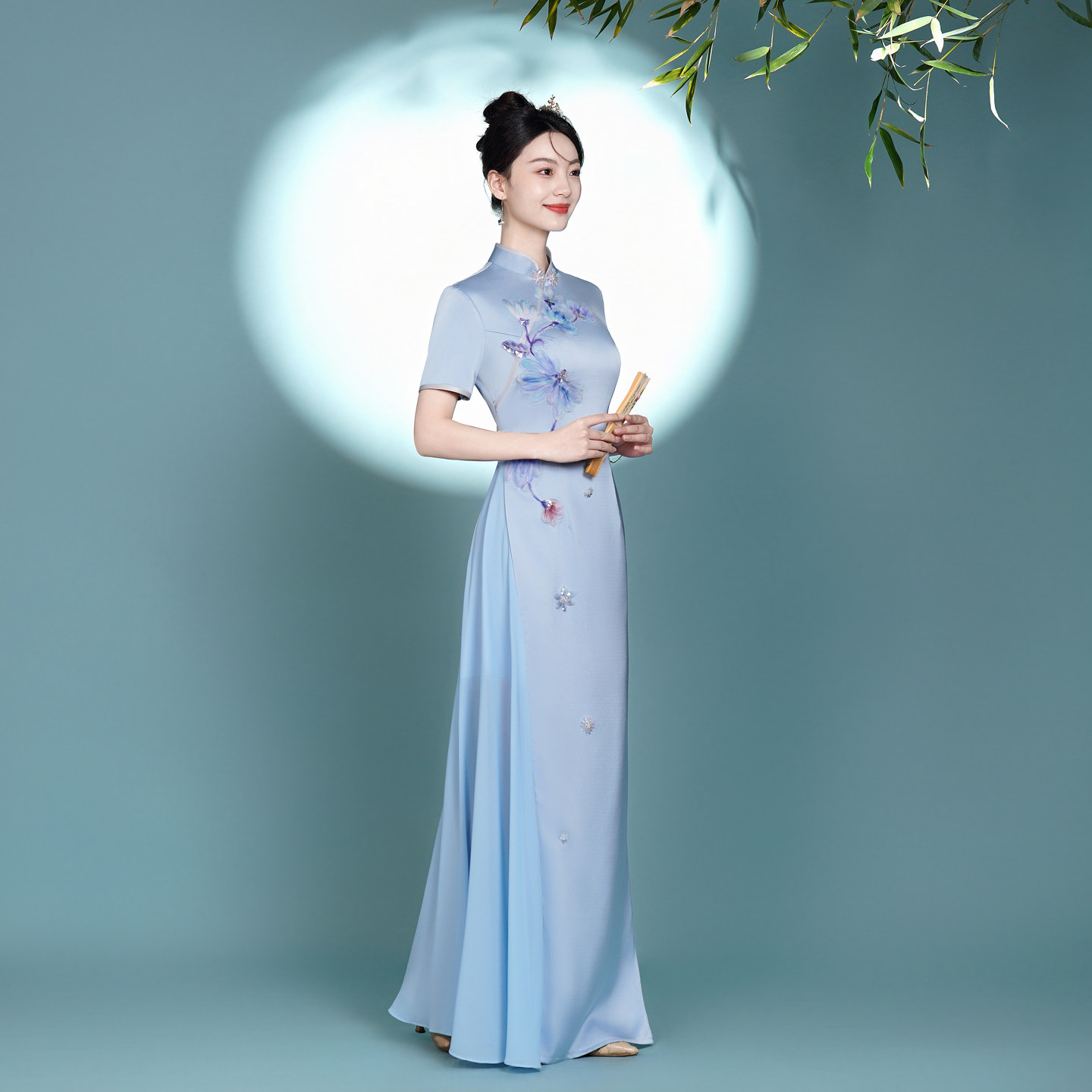 高端走秀旗袍2026年新款年轻淡蓝色宴会裙女表演显瘦气质演出礼服