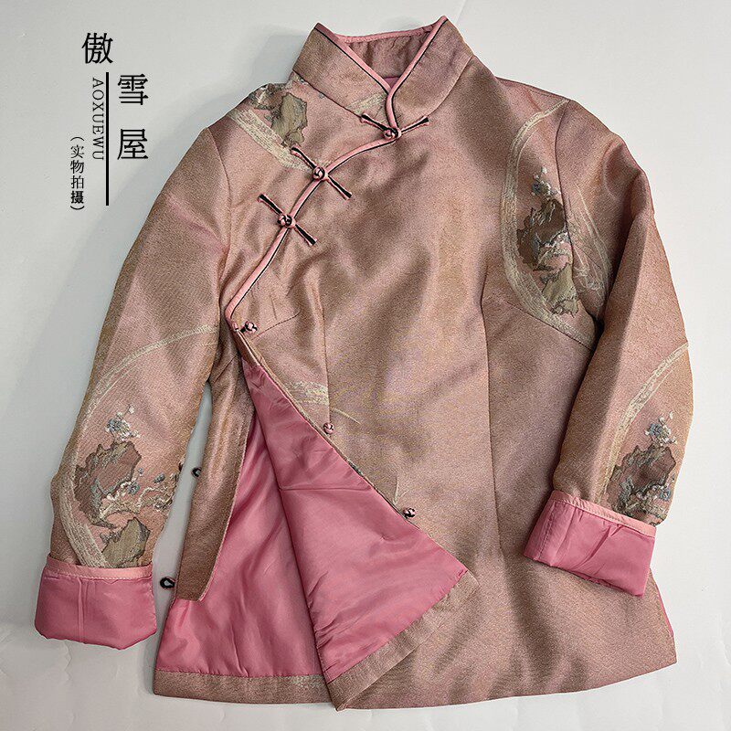 傲雪屋中国风新品冬季夹棉中式旗袍改良上衣复古盘扣保暖唐装女
