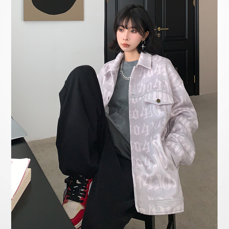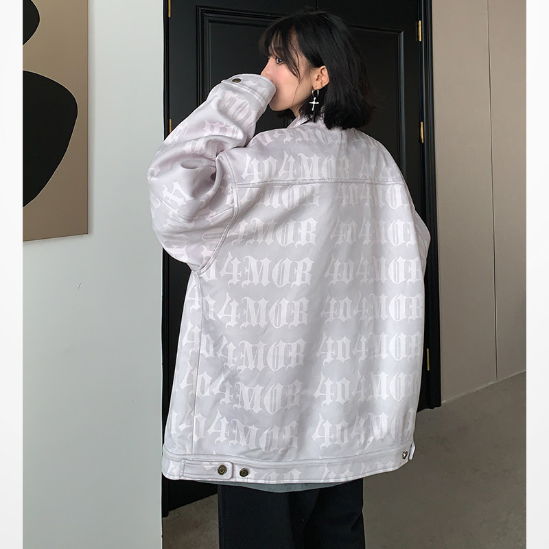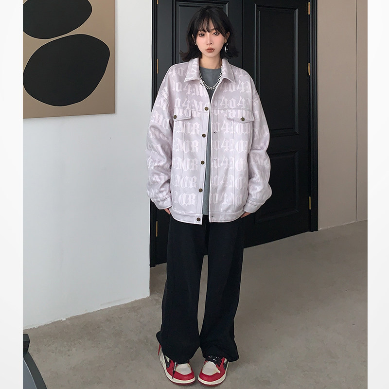 淘宝404MOB秋冬数码满印字母夹克国潮麂皮绒宽松美式复古休闲外套男女