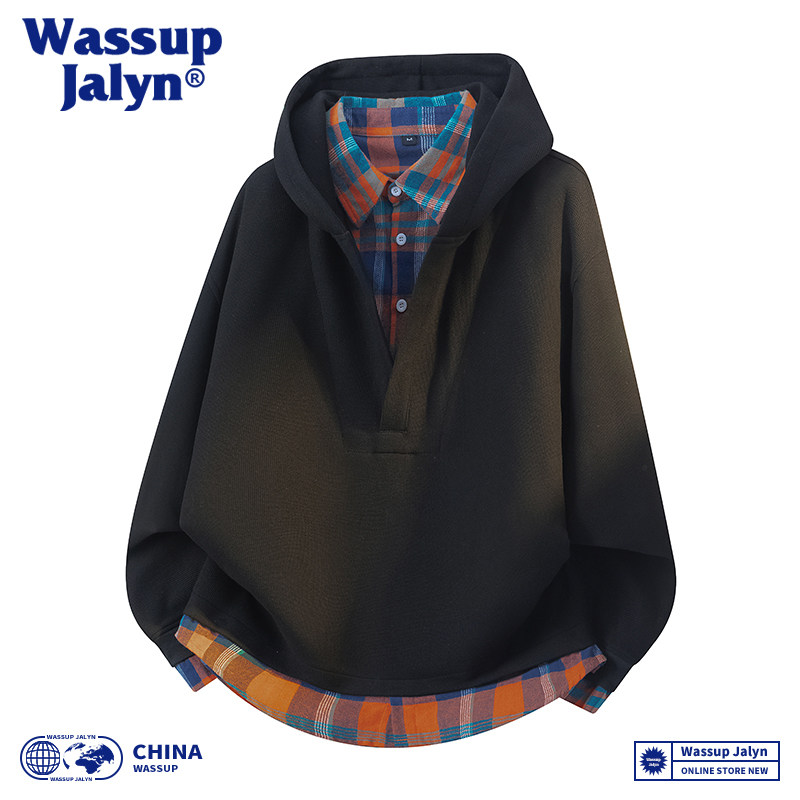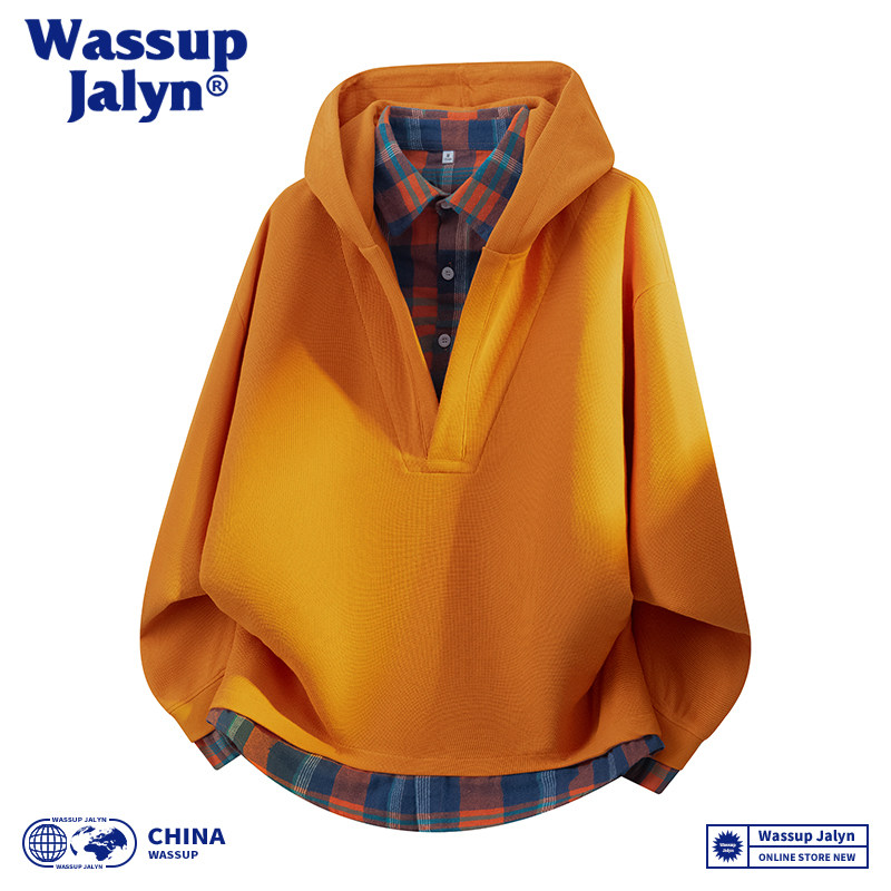WASSUP JALYN美式假两件华夫格连帽卫衣休闲春秋2026新款上衣男款