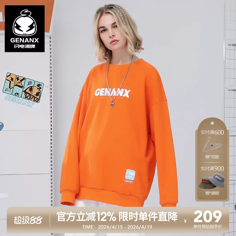 --------------------- GENANX闪电潮牌套头卫衣情侣款圆领简约国潮新款百搭秋季长袖上衣 【原售价】269元 【现售价】209元 【推荐理由】
