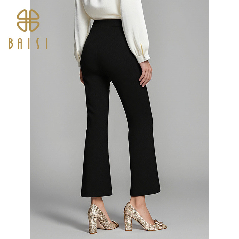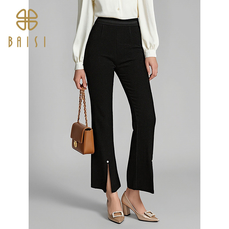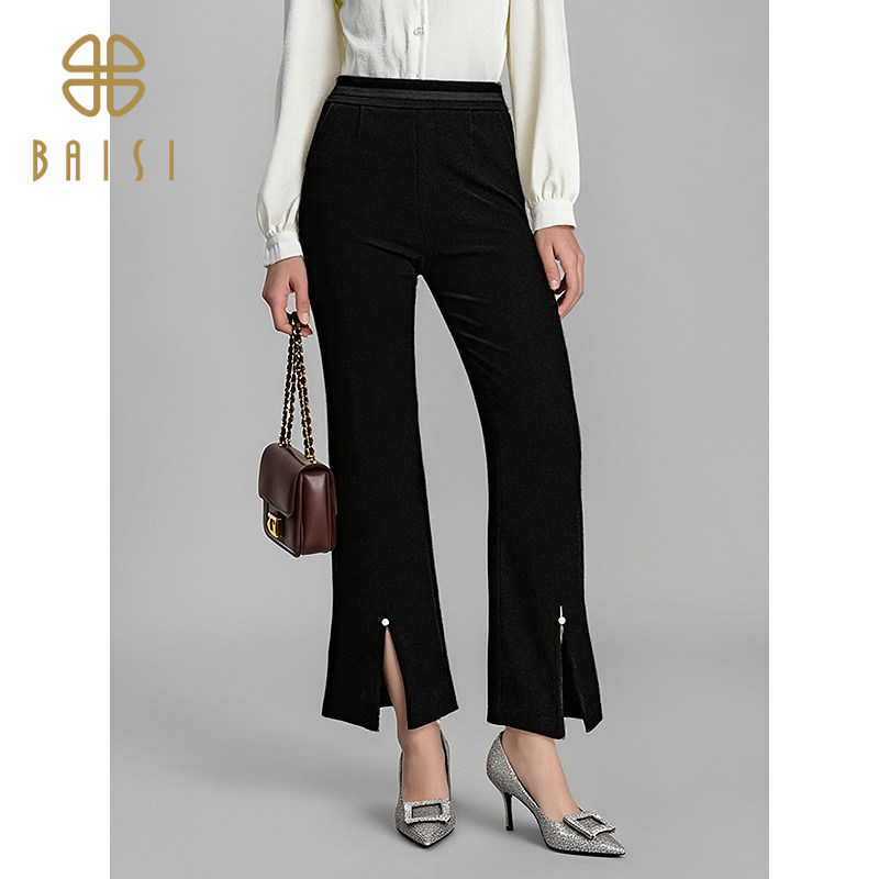 淘宝2025秋季新品百丝高腰修身显瘦垂感微喇裤通勤百搭前开叉长裤女