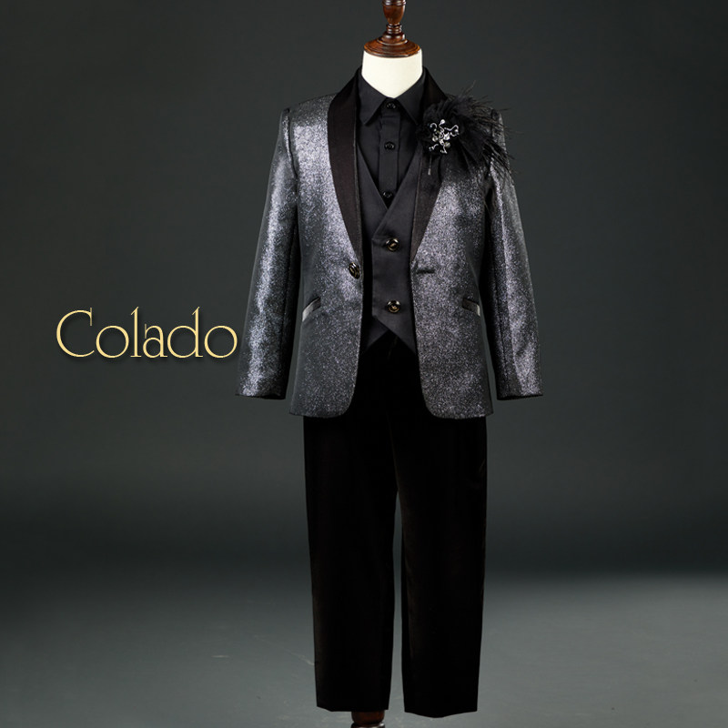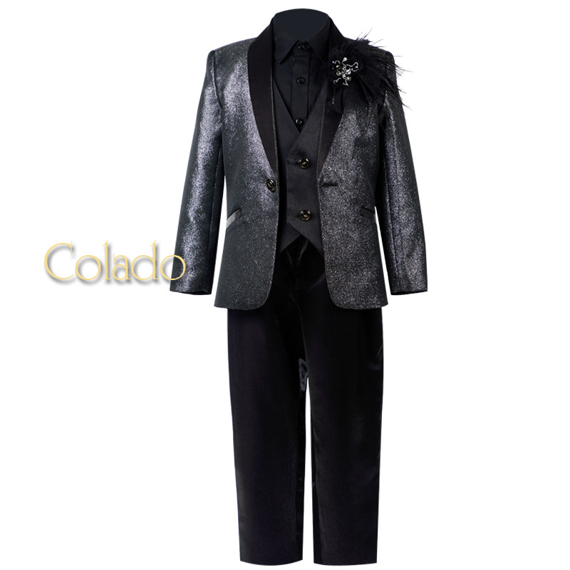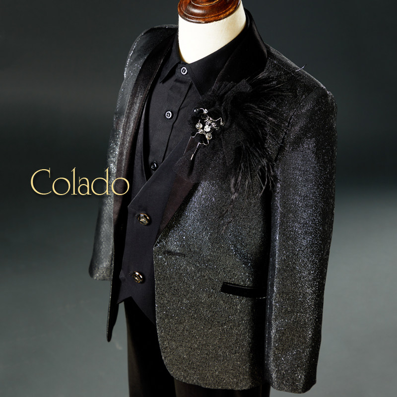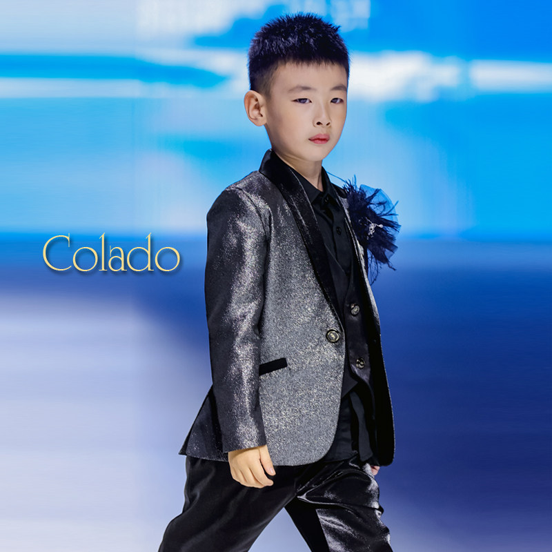 Colado扣诺男童礼服钢琴演出服小主持人表演儿童黑色西装马甲定制