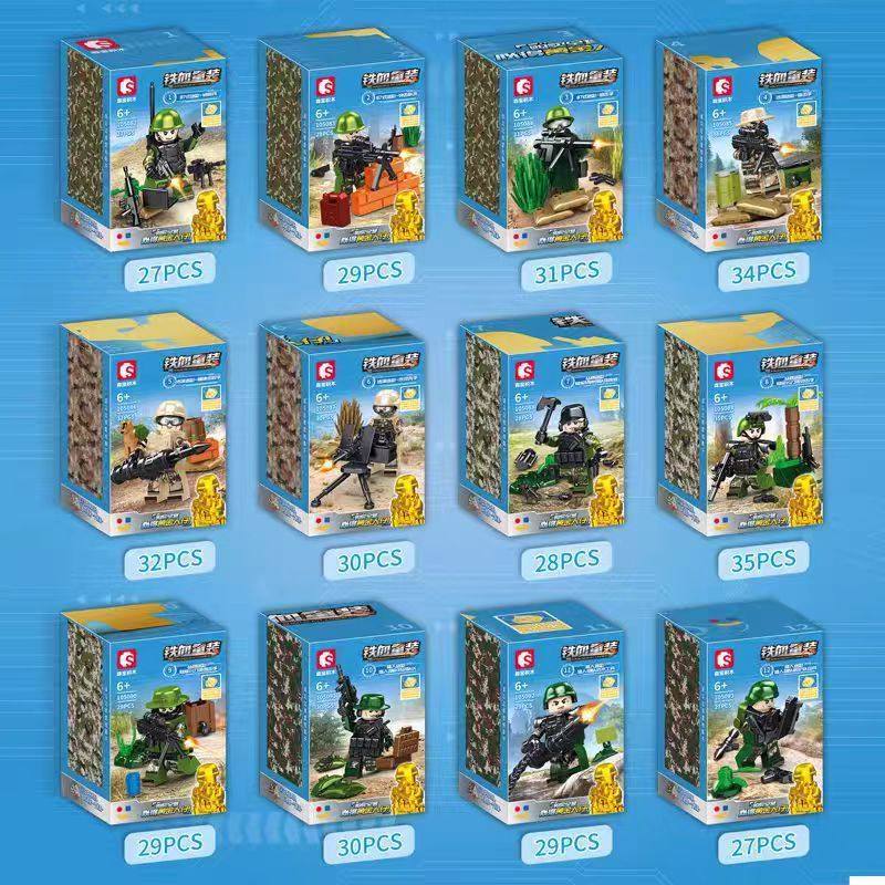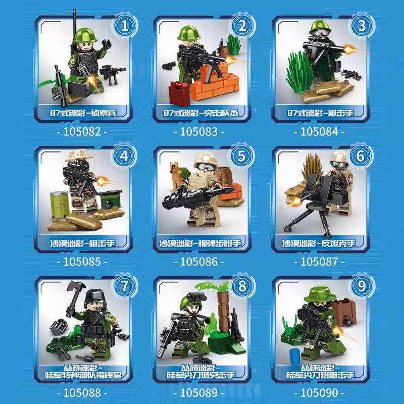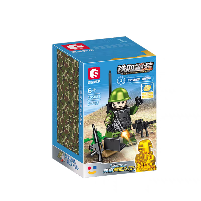 新品森宝积木105082铁血重装军事迷彩兵人仔可合体黄金人仔儿童礼