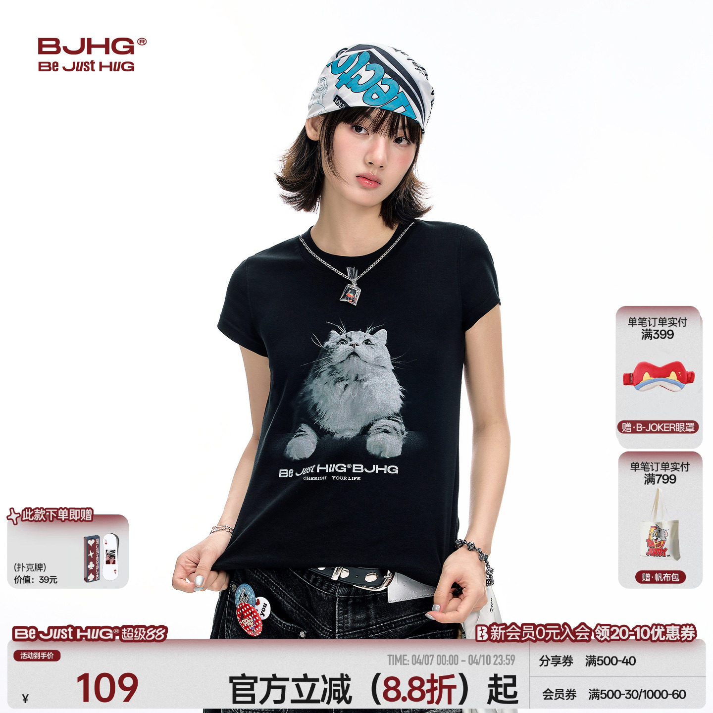 --------------------- BJHG不计后果小猫抓鱼T恤短袖女款夏季修身上衣半袖凉感正肩t恤女 --------------------- --------------------- 【原价】129元 【券后价】99元