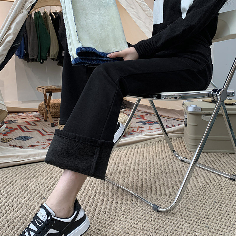 加绒微喇牛仔裤女高腰显瘦2025年新款秋冬阔腿宽松马蹄喇叭裤冬季
