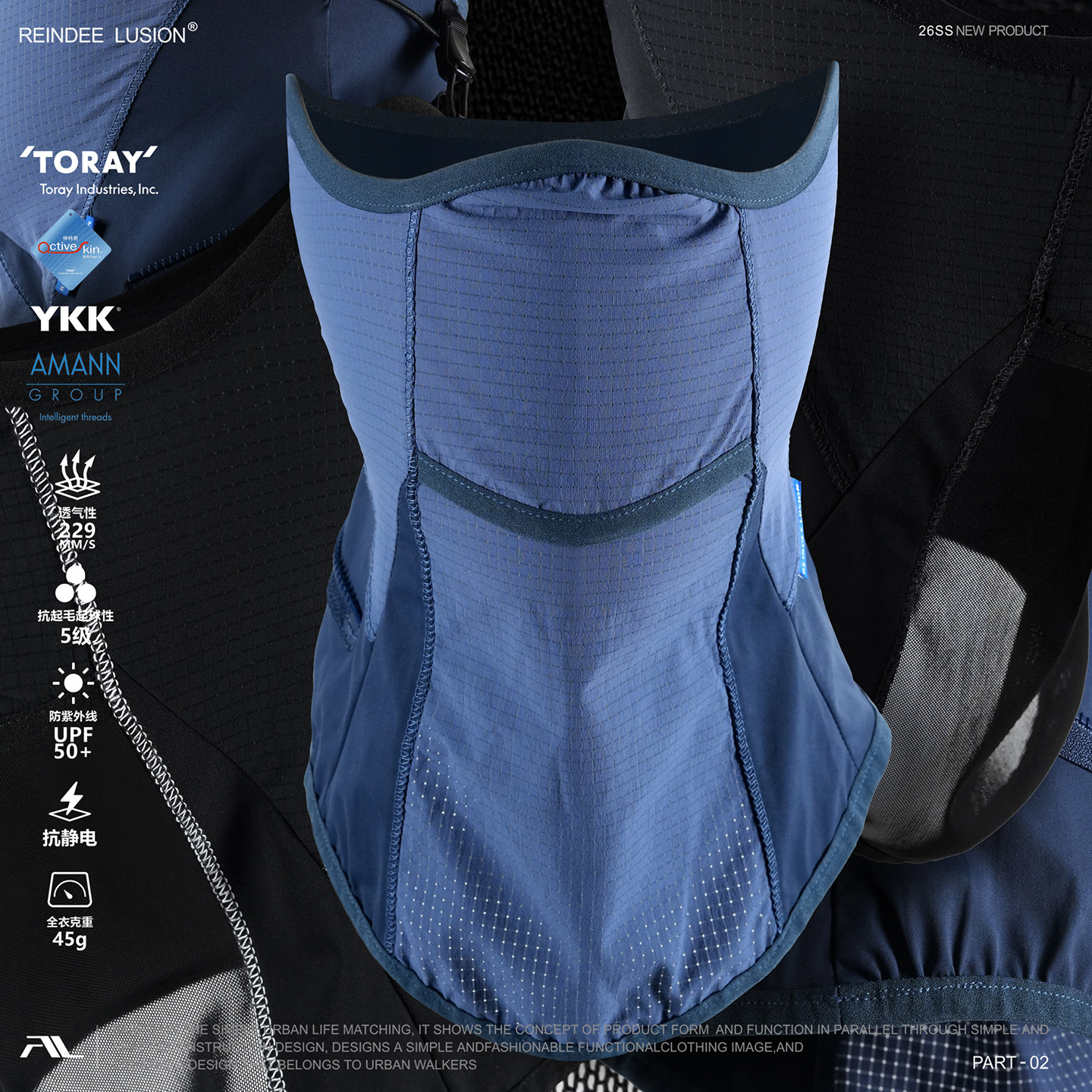 --------------------- RL | REINDEE LUSION 2合1 TORAY防晒UPF50+户外运动透气围脖面罩 【原售价】158元 【现售价】110元 【推荐理由】