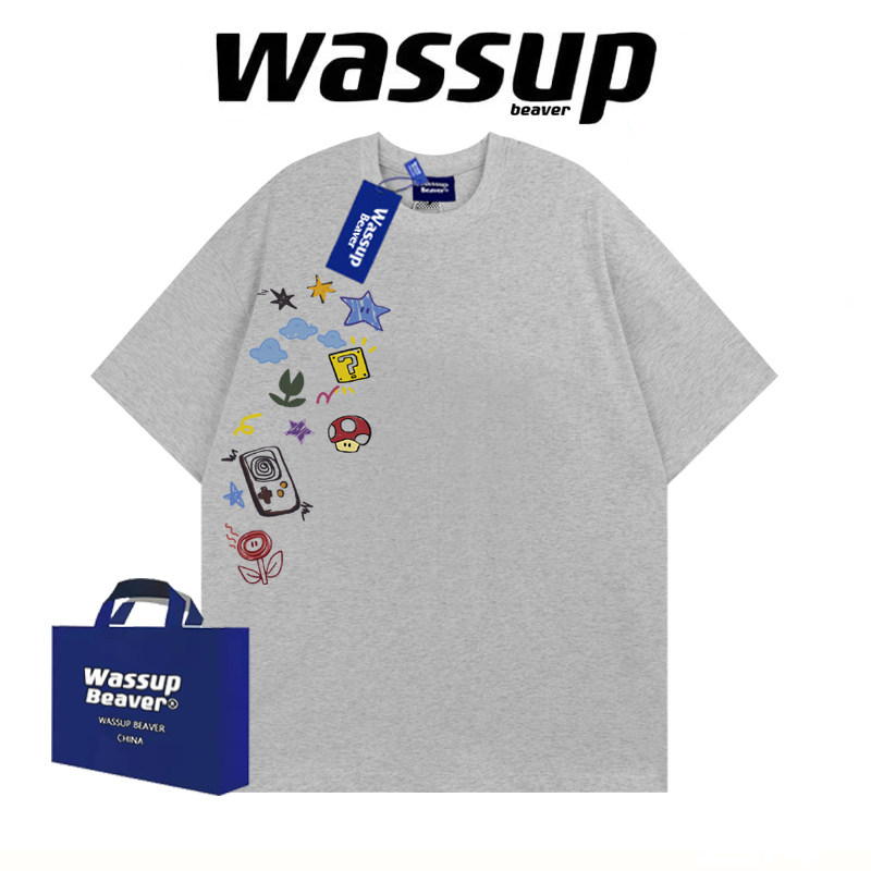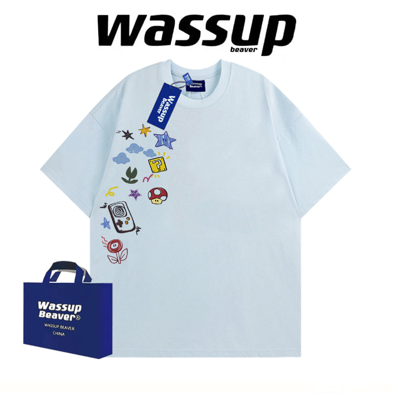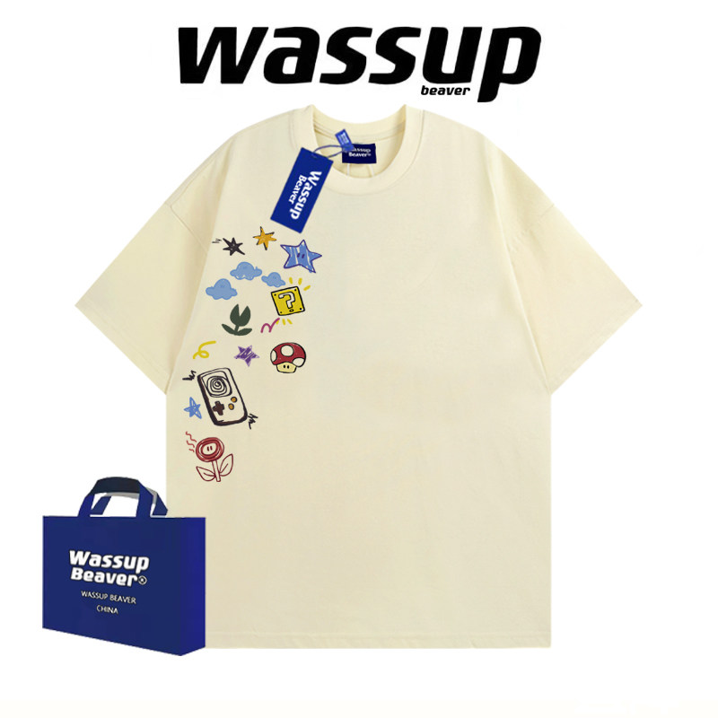 --------------------- WASSUP BEAVER美式卡通涂鸦重磅T恤上衣男女宽松纯棉情侣夏季短袖 【原售价】99元 【现售价】47.5元 【推荐理由】