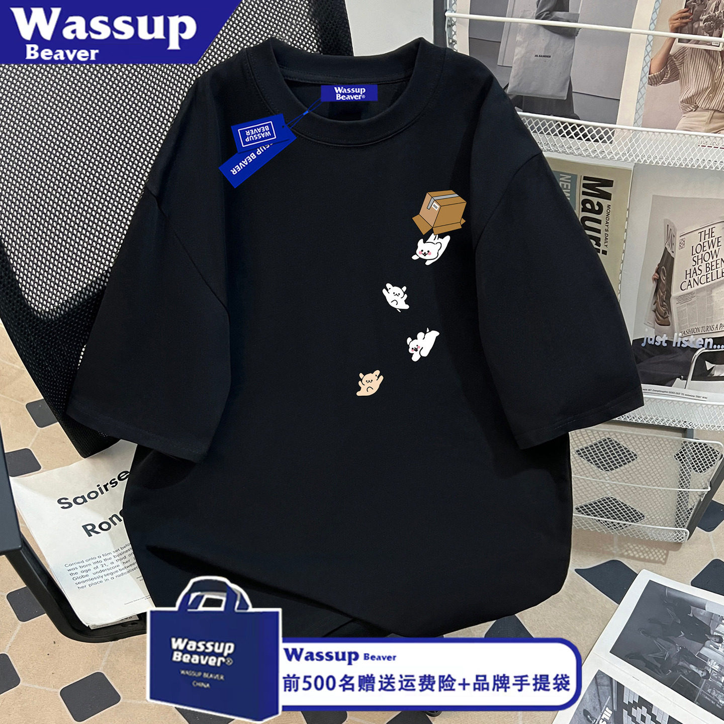 --------------------- WASSUP BEAVER趣味逃跑小狗印花纯棉短袖t恤男女夏季情侣休闲上衣 【原售价】99元 【现售价】51.5元 【推荐理由】