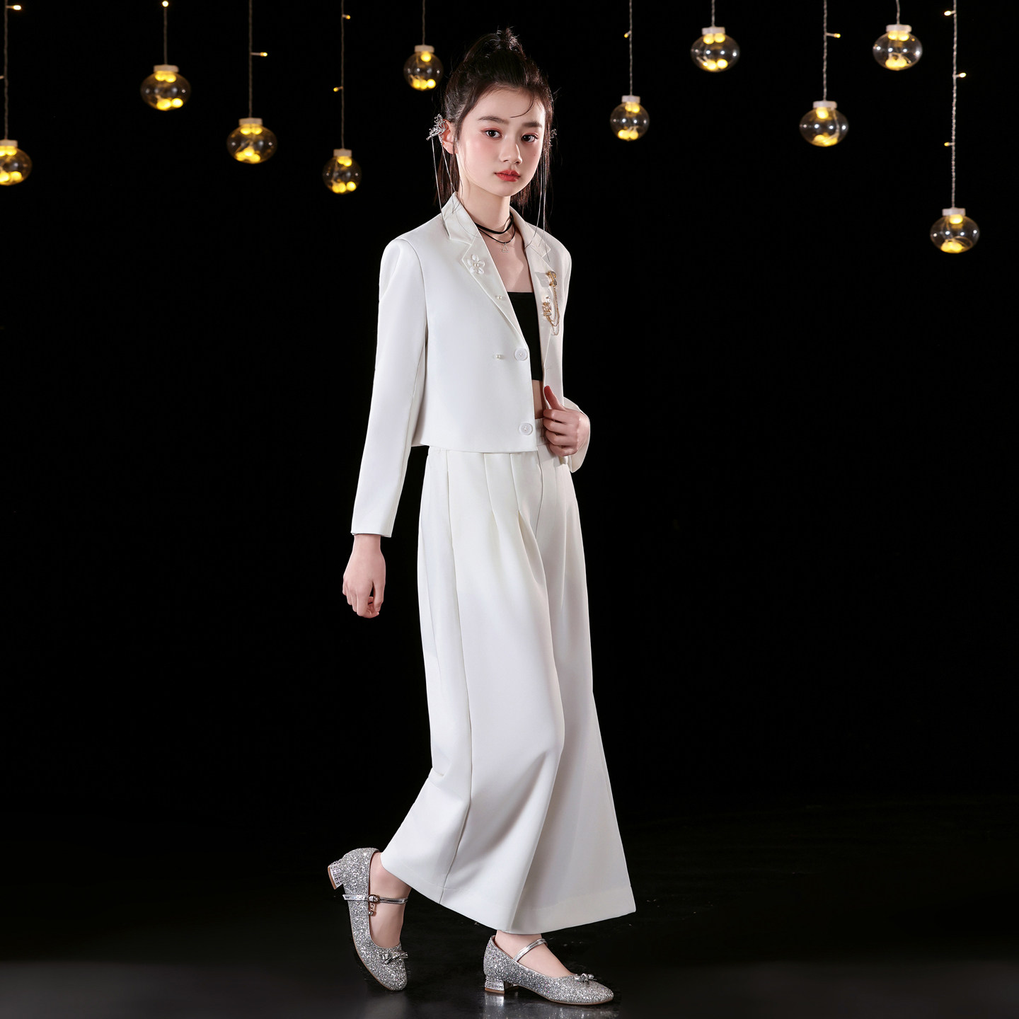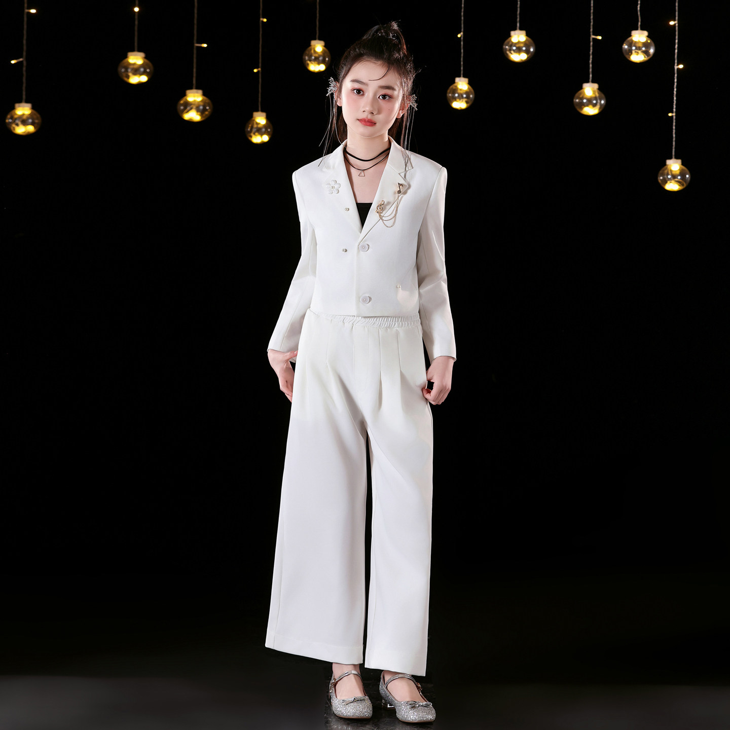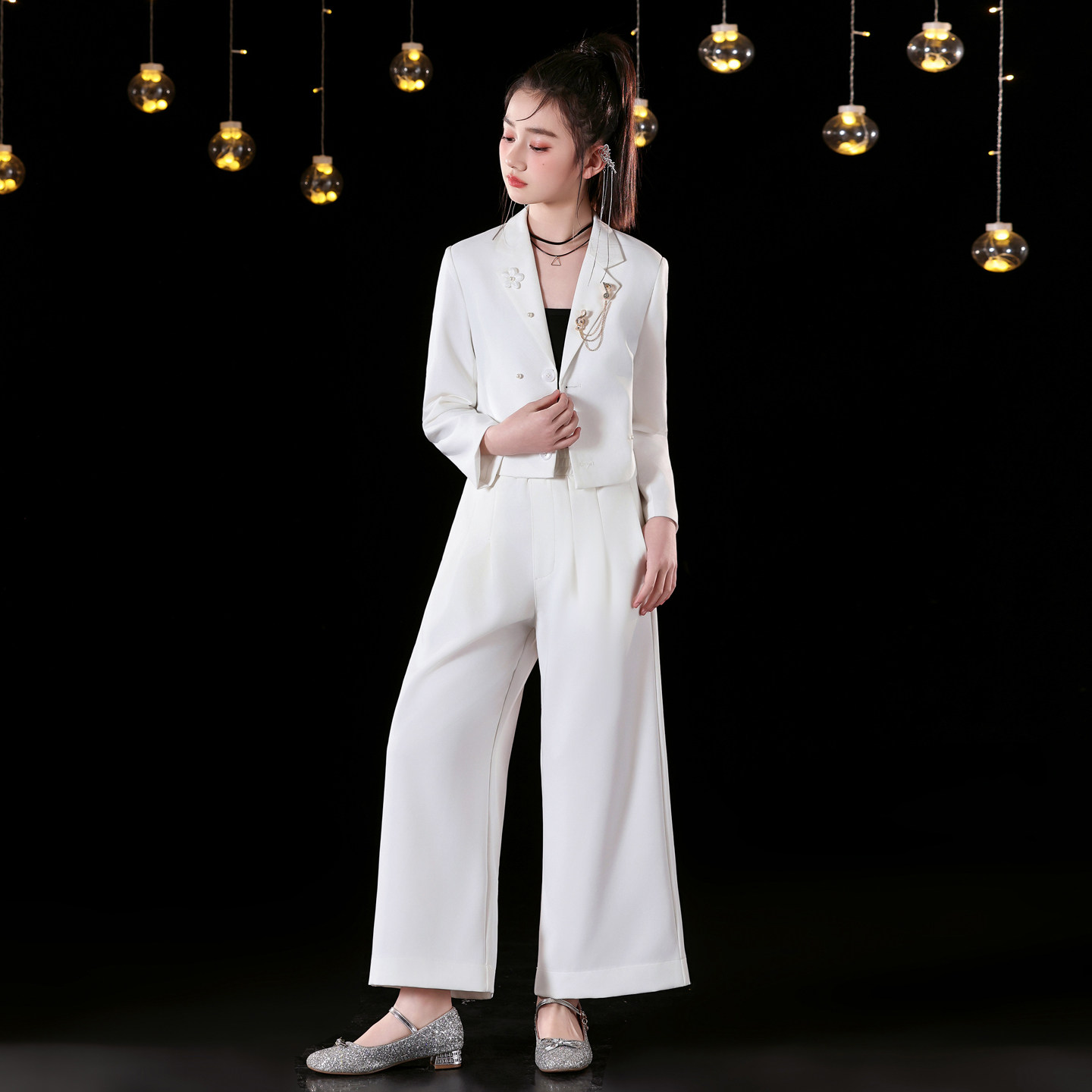 女童礼服轻奢阔腿裤走秀唱歌主持人西装潮服中大童女孩钢琴演出服