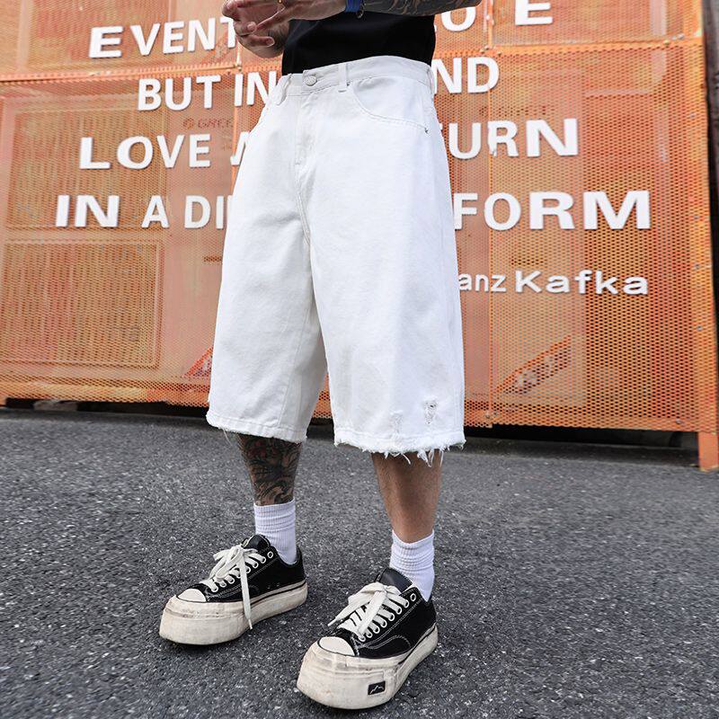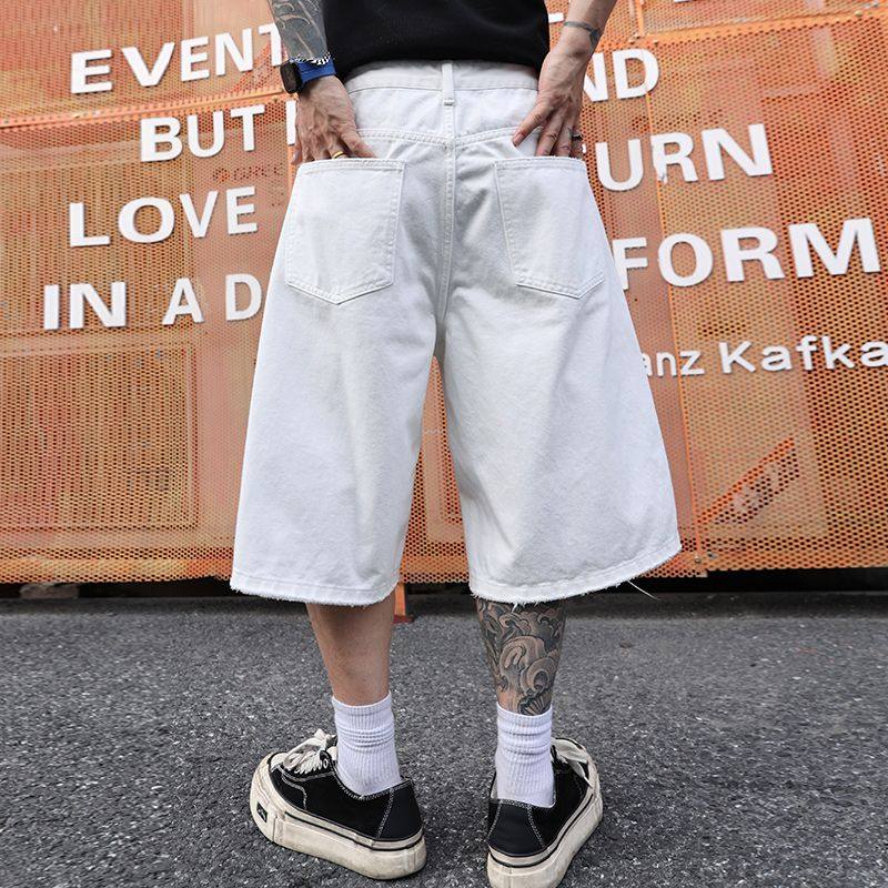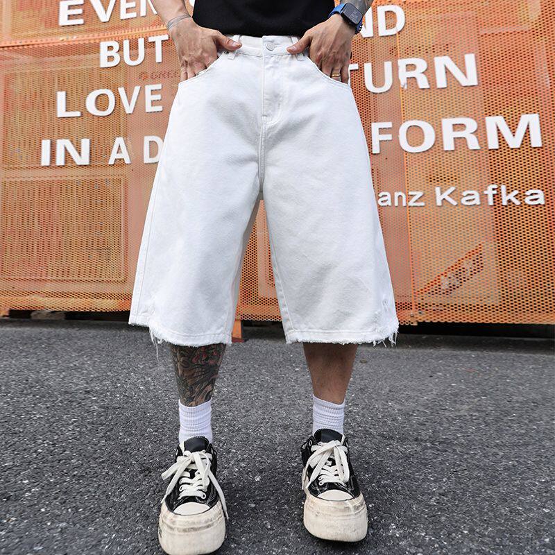 巴黎风潮牌美式复古高街设计感时尚牛仔短裤男款宽松复古六分裤
