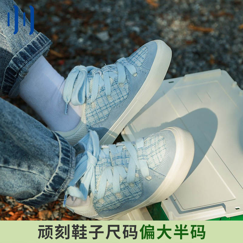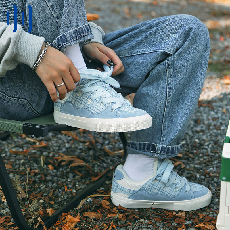 顽刻ollieskate面包鞋蓝色小香风拼接秋冬男女BAKE国潮滑板鞋