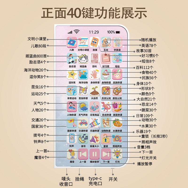 --------------------- 折叠104按键儿童早教音乐小孩可充电仿真折叠触屏手机玩具3岁宝宝 【原售价】59.8元 【现售价】35.37元 【推荐理由】