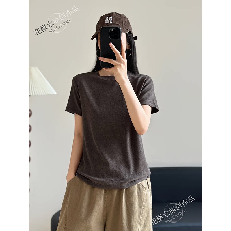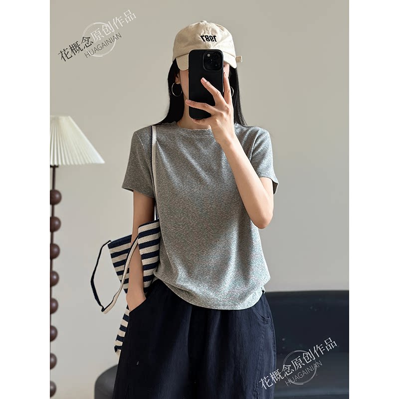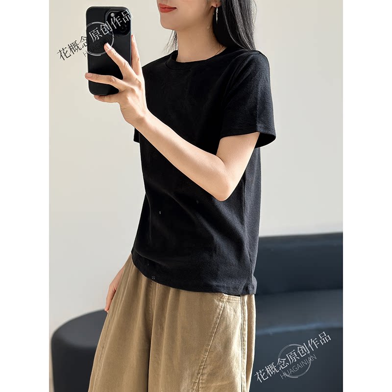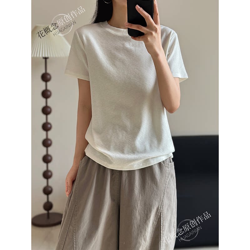 花概念【棉叙时光】纯色简约风短袖T恤女质感高级基础款百搭上衣