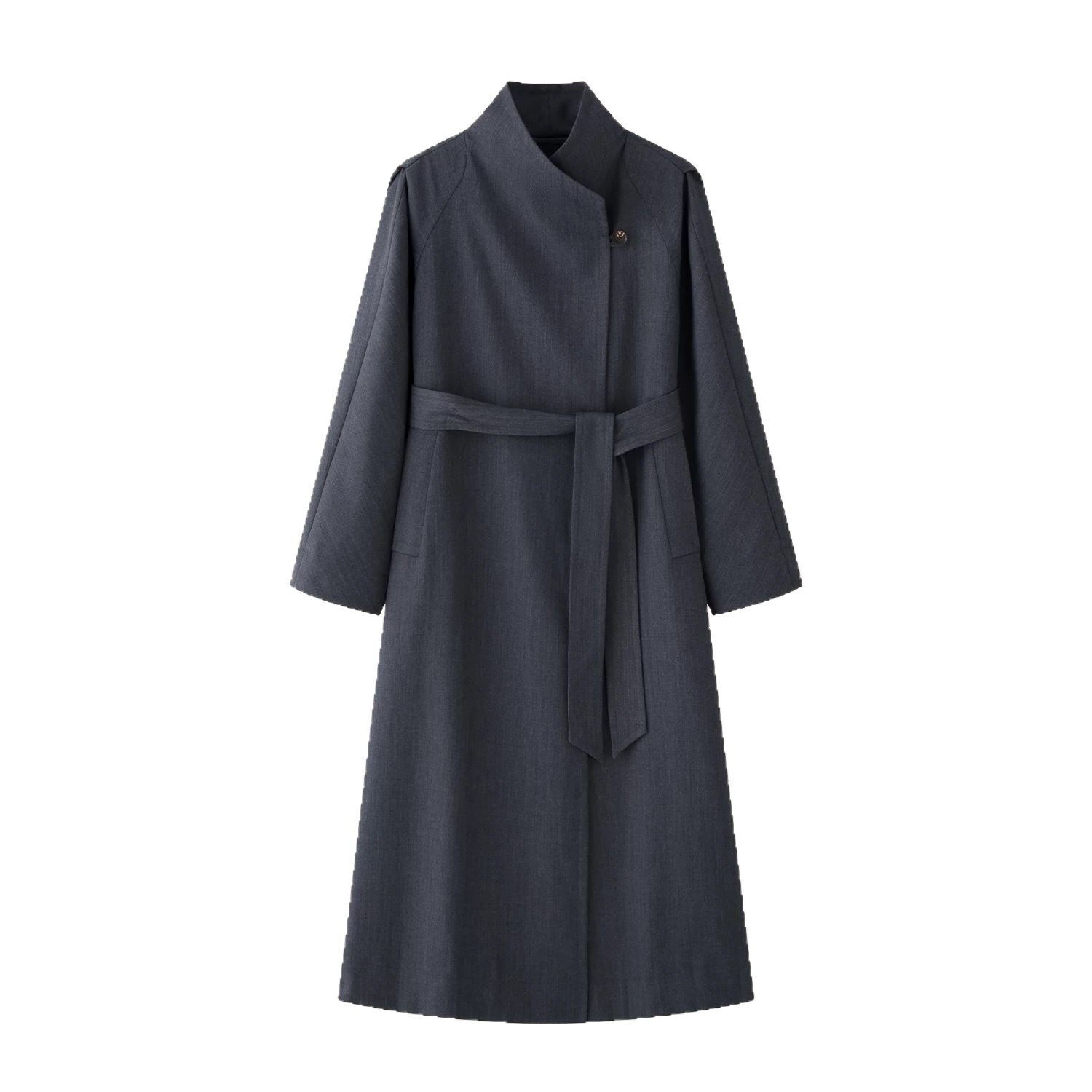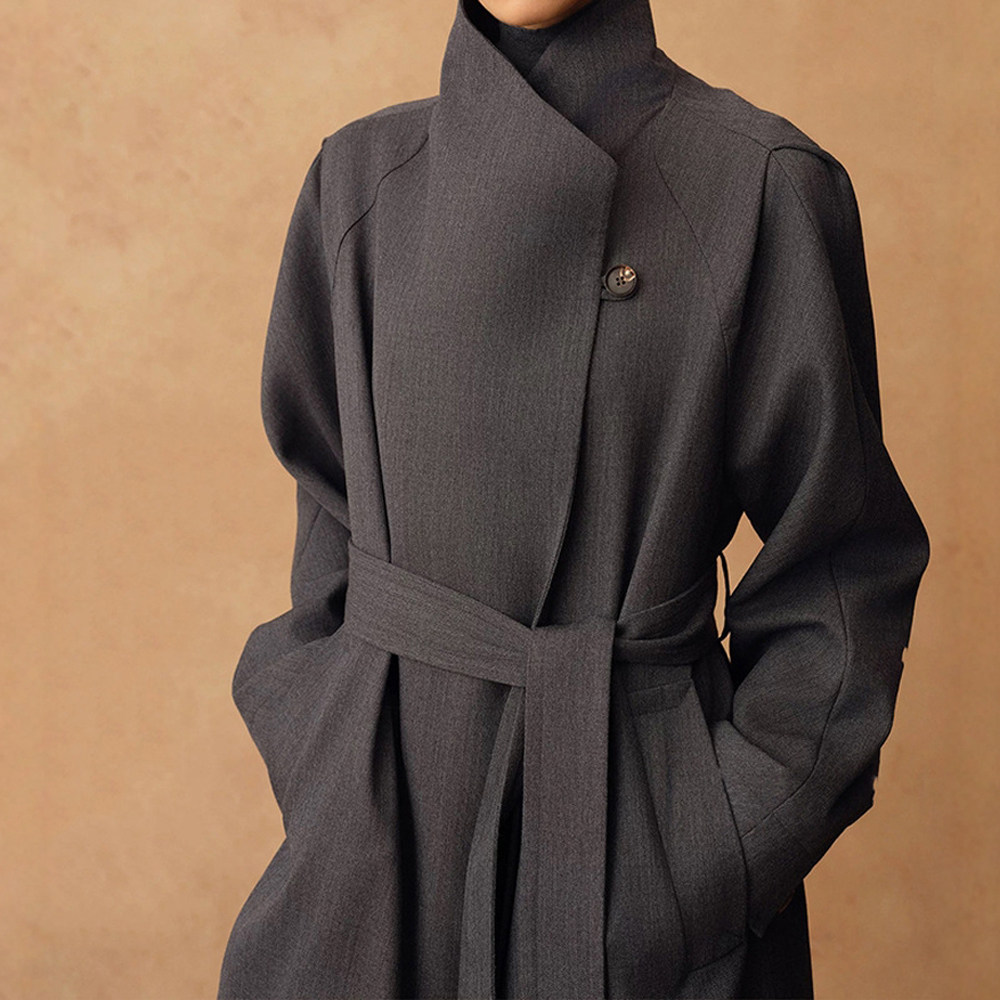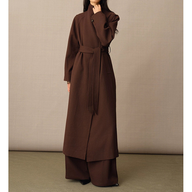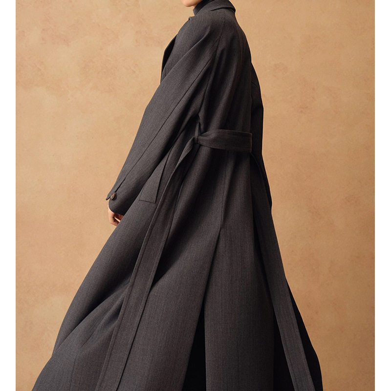 气场实足!秋冬新款露珠羊毛肌理两穿大气翻领系带长款风衣外套