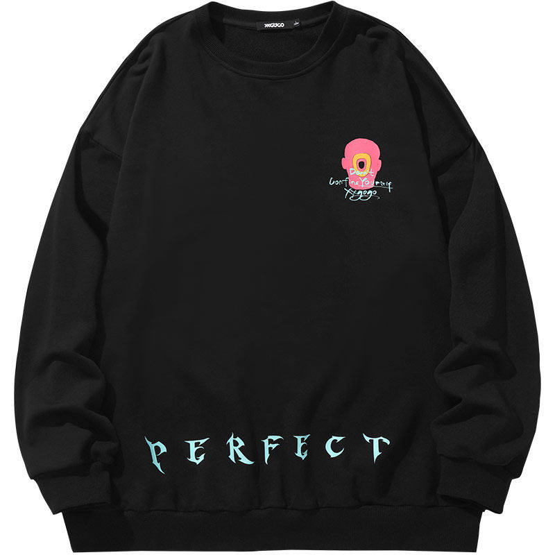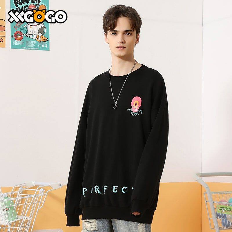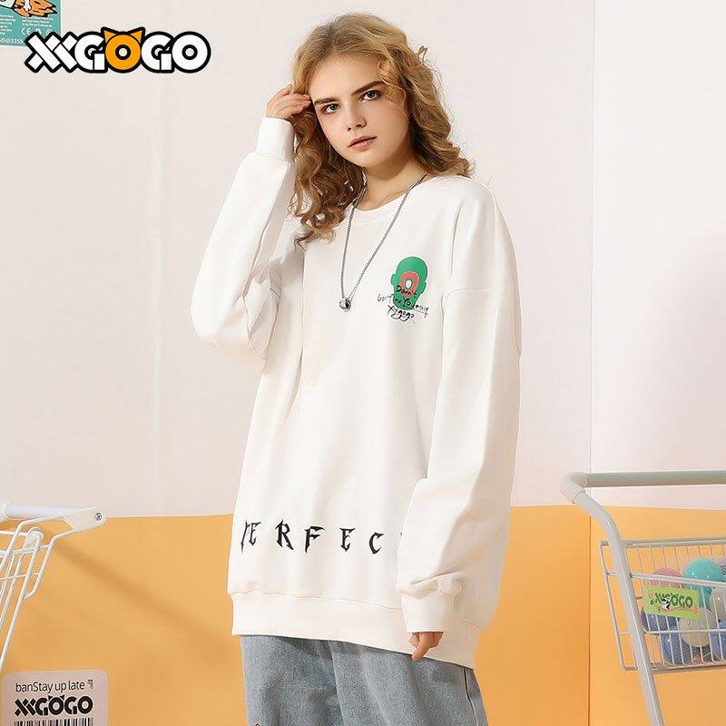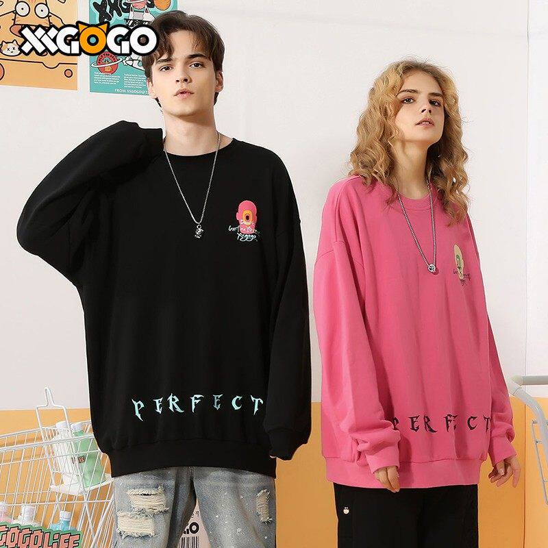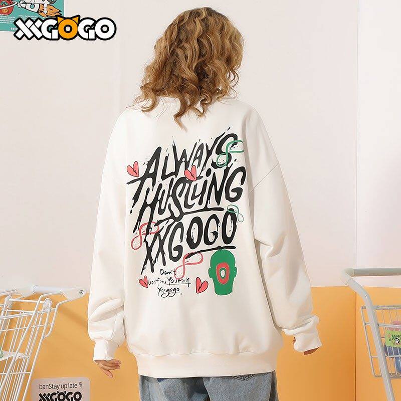 XXGOGO春秋季个性圆领卫衣爱心哥特字母印花国潮宽松情侣套头卫衣